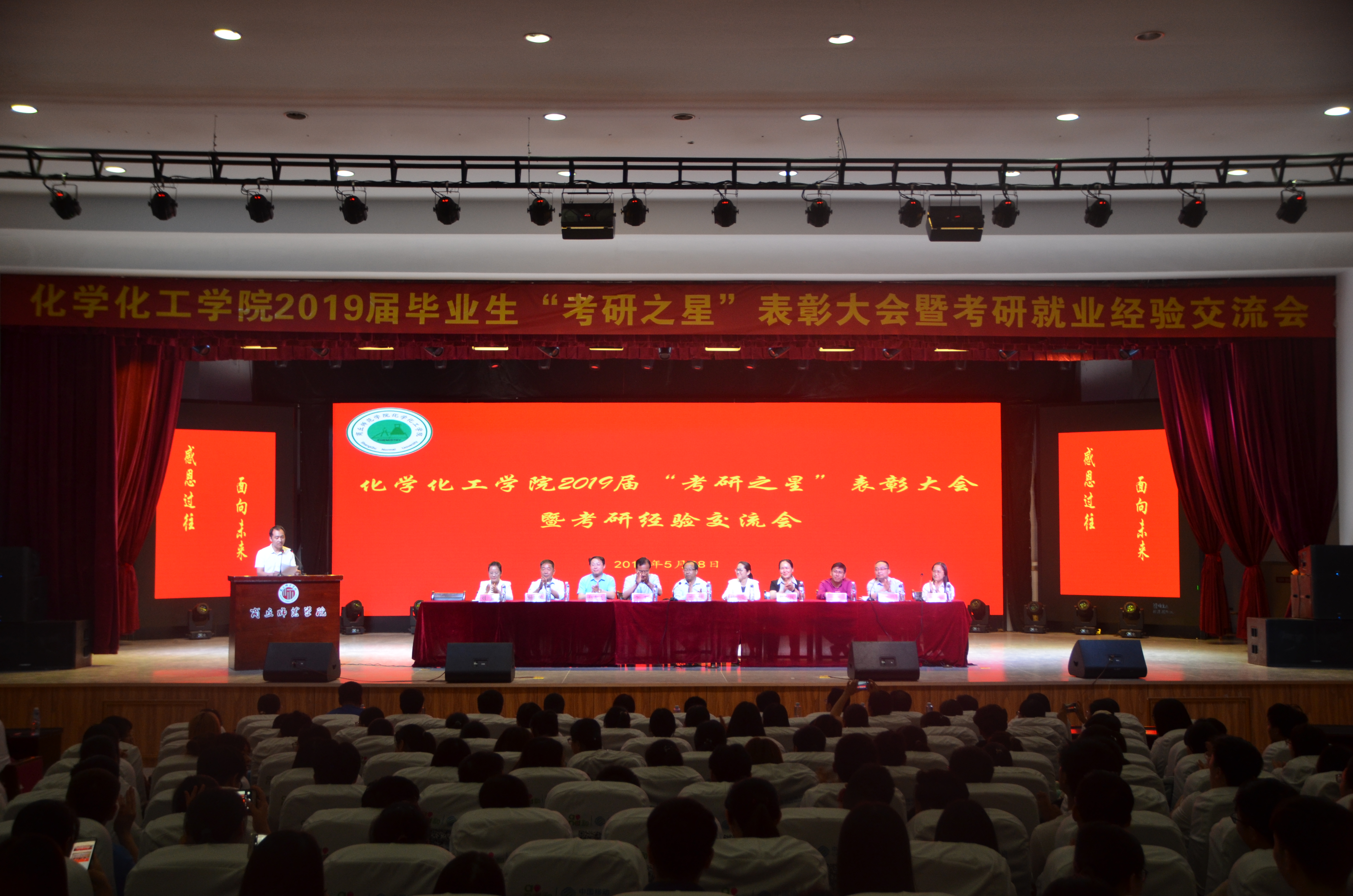5月28日,金年会jinnianhuicom于睢阳校区大礼堂举办了2019届毕业生“考研之星”表彰大会暨考研就业经验交流会。金年会副校长郭文佳、宣传部部长李辉、校团委书记杨莹莹、教务处副处长赵龙飞、招生与就业处副处长杨春风应邀出席活动,金年会jinnianhuicom党政领导班子、系主任、副主任、教学办公室主任、院办公室主任、辅导员、2015级考研之星代表及全体16、17、18级同学参加活动。会议由副院长孟团结主持。