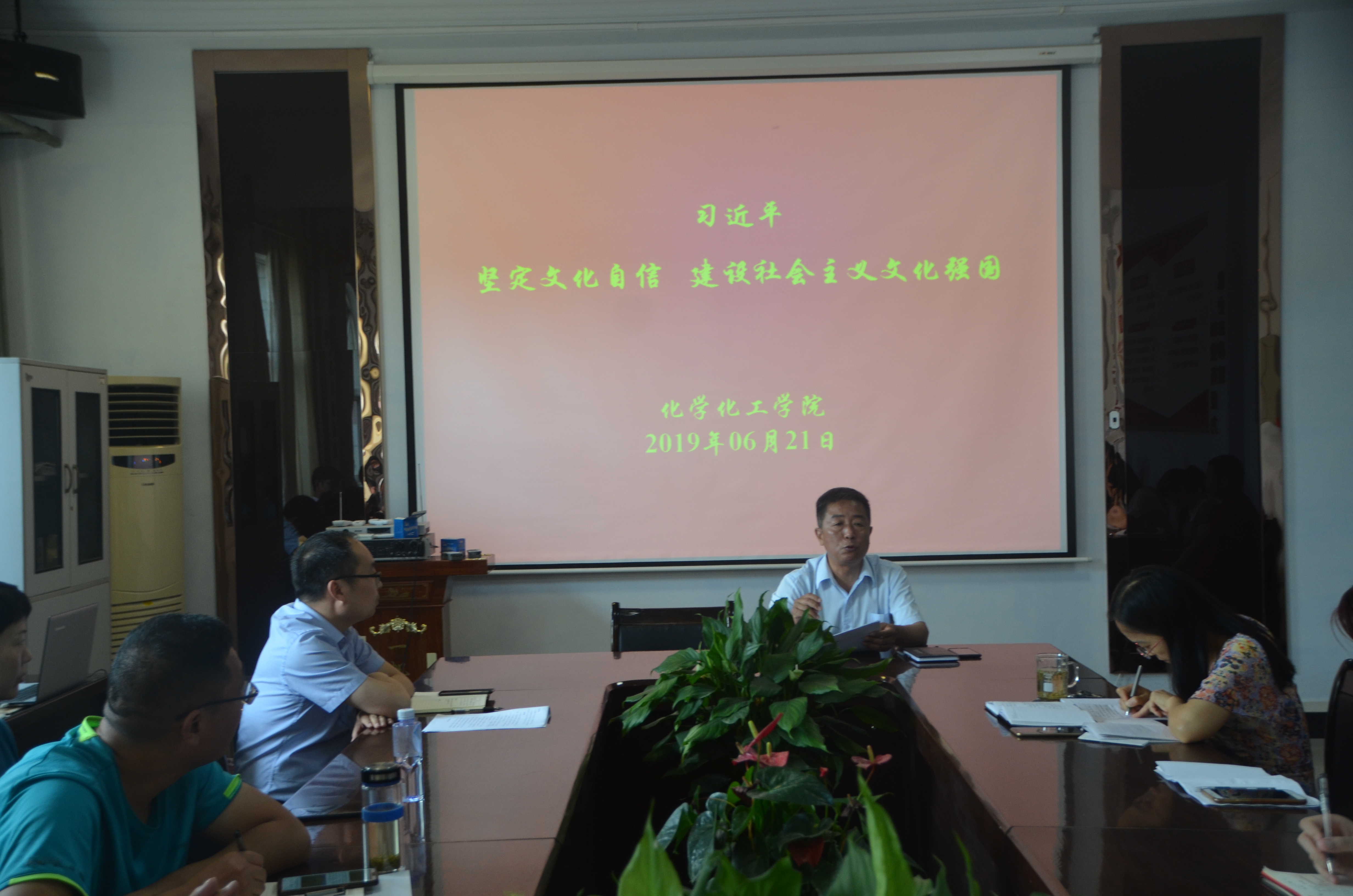 为增强全院师生坚定文化自信,为建设社会主义文化强国贡献自己的力量,6月21日下午,金年会jinnianhuicom于睢阳校区7号楼会议室组织学习习近平总书记在《求是》上发表的文章:“坚定文化自信,建设社会主义文化强国”。会议由党总支书记韩忠民主持,全体教职工参加。