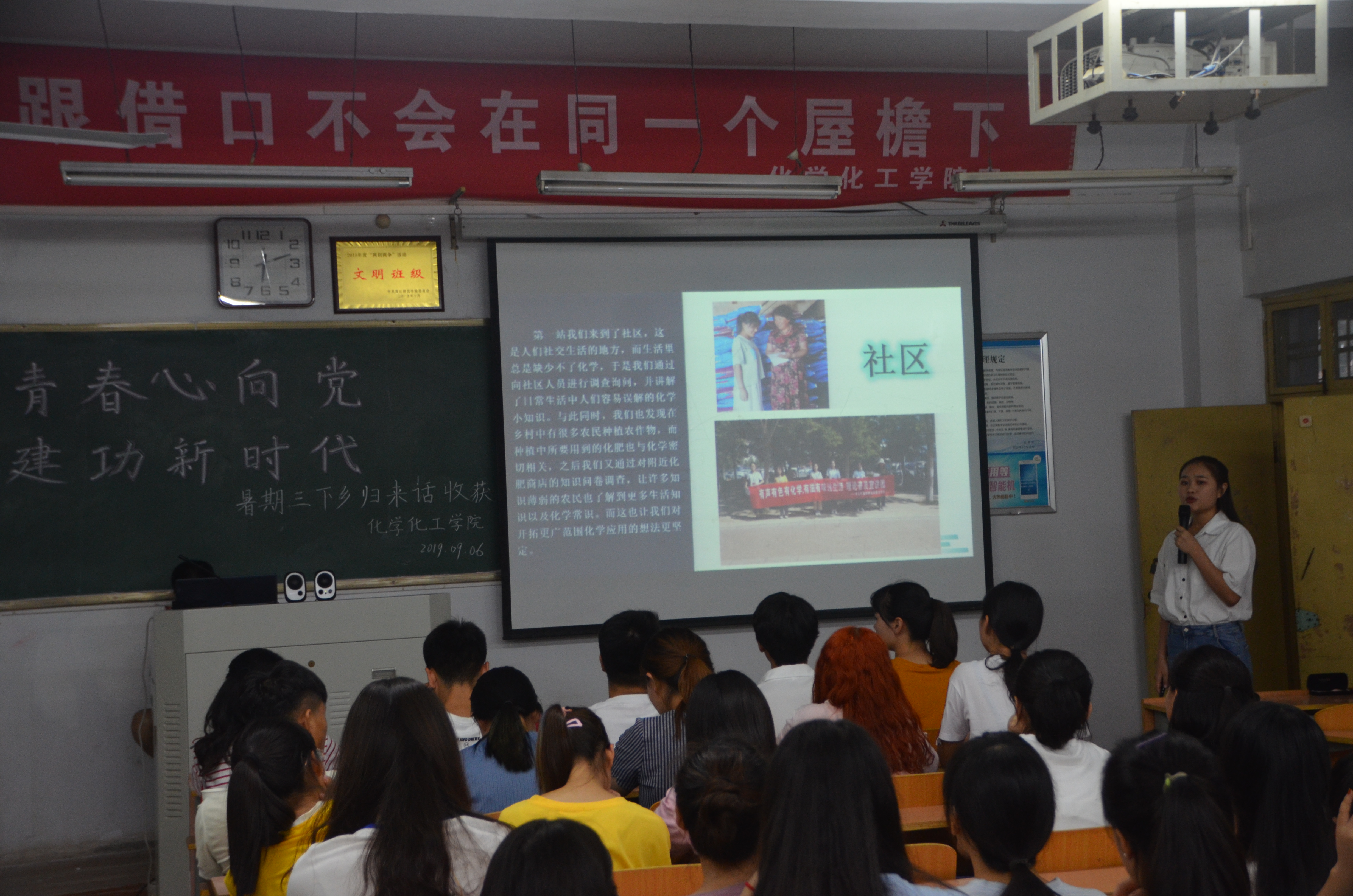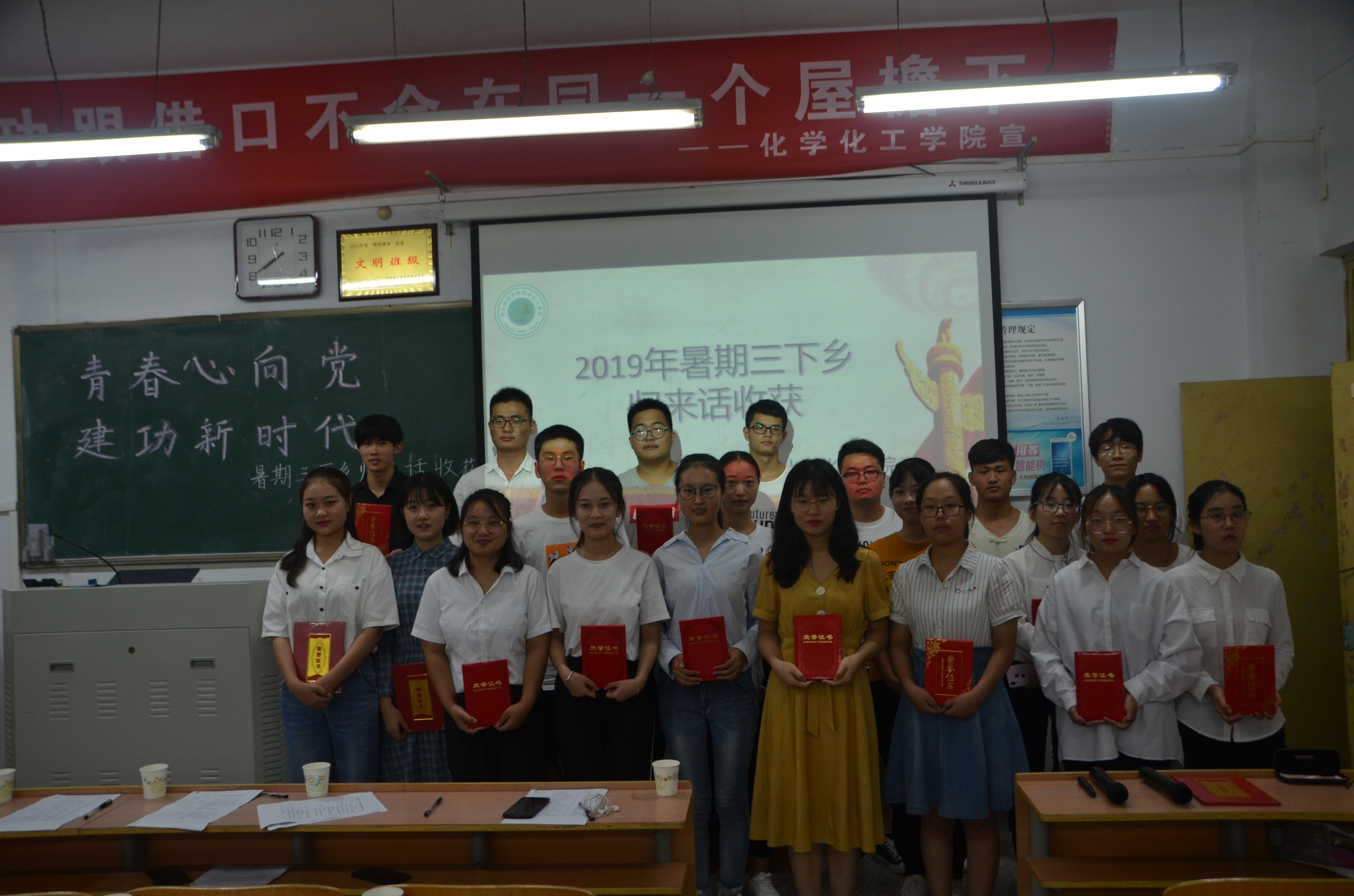 为深入学习贯彻习近平新时代中国特色社会主义思想,贯彻党的十九大和十九届二中、三中全会以及习近平总书记在纪念五四运动 100 周年大会上重要讲话精神,2019 年9 月6 日,金年会jinnianhuicom于睢阳校区1 号楼408 教室举办“青春心向党,建功新时代”暑假三下乡归来话收获活动。17、18 级学生代表和实践团队参加此次活动。