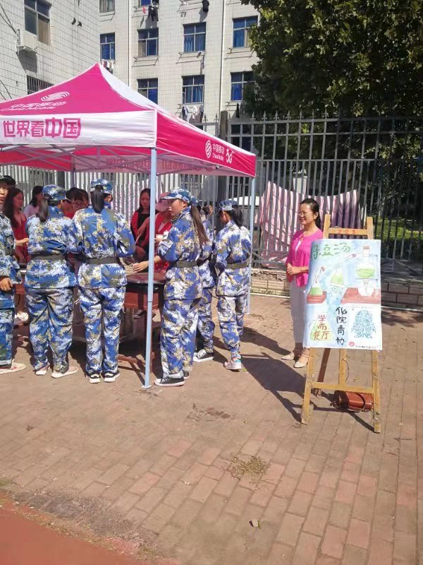 初秋的操场,骄阳似火,初入大学的同学们正在进行紧张的军训。教官一遍遍地喊着口号,学生们昂首挺胸、迈着整齐的步伐,每个人的脸上都流着辛勤的汗水,身上的军装湿了干、干了又湿,泛着白白的汗渍,但每一个人都在坚持着,一遍一遍规范动作。为给军训期间学生们降温解暑,金年会jinnianhuicom联合学而餐厅组织开展了“爱心绿豆汤、军训送清凉”活动。党总支副书记刘瑛前来看望学生。