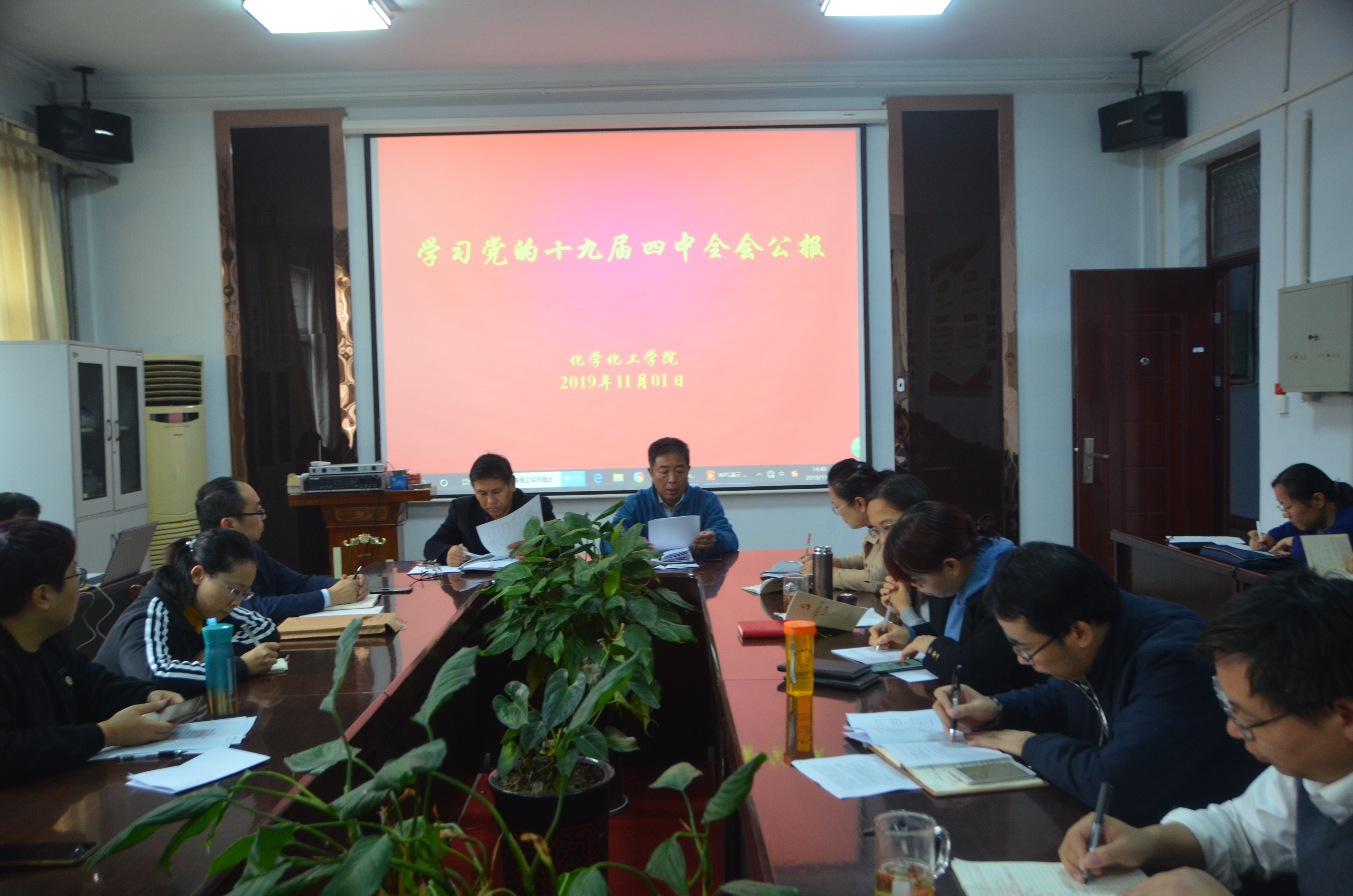 为深入学习党的十九届四中全会精神。11月1日下午,金年会jinnianhuicom于睢阳校区7号楼会议室召开“学习党的十九届四中全会公报”会议。金年会jinnianhuicom全体教职工参加,会议由党总支书记韩忠民主持。