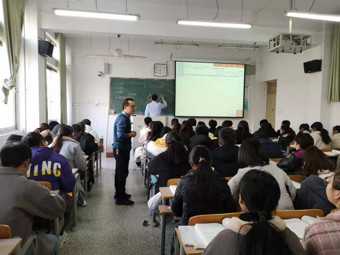 2019年12月11日周三上午第一节,金年会jinnianhuicom刘新明老师的《有机化学》课程教学范式改革公开课在文化路校区1号教学楼411教室举行。授课班级为金年会jinnianhuicom2018级材料科学、新能源专业18-1班,金年会jinnianhuicom孟团结副院长、学院近三年新进教师参加了此次课堂教学观摩活动。此次公开课的内容是:第十七章杂环化合物。