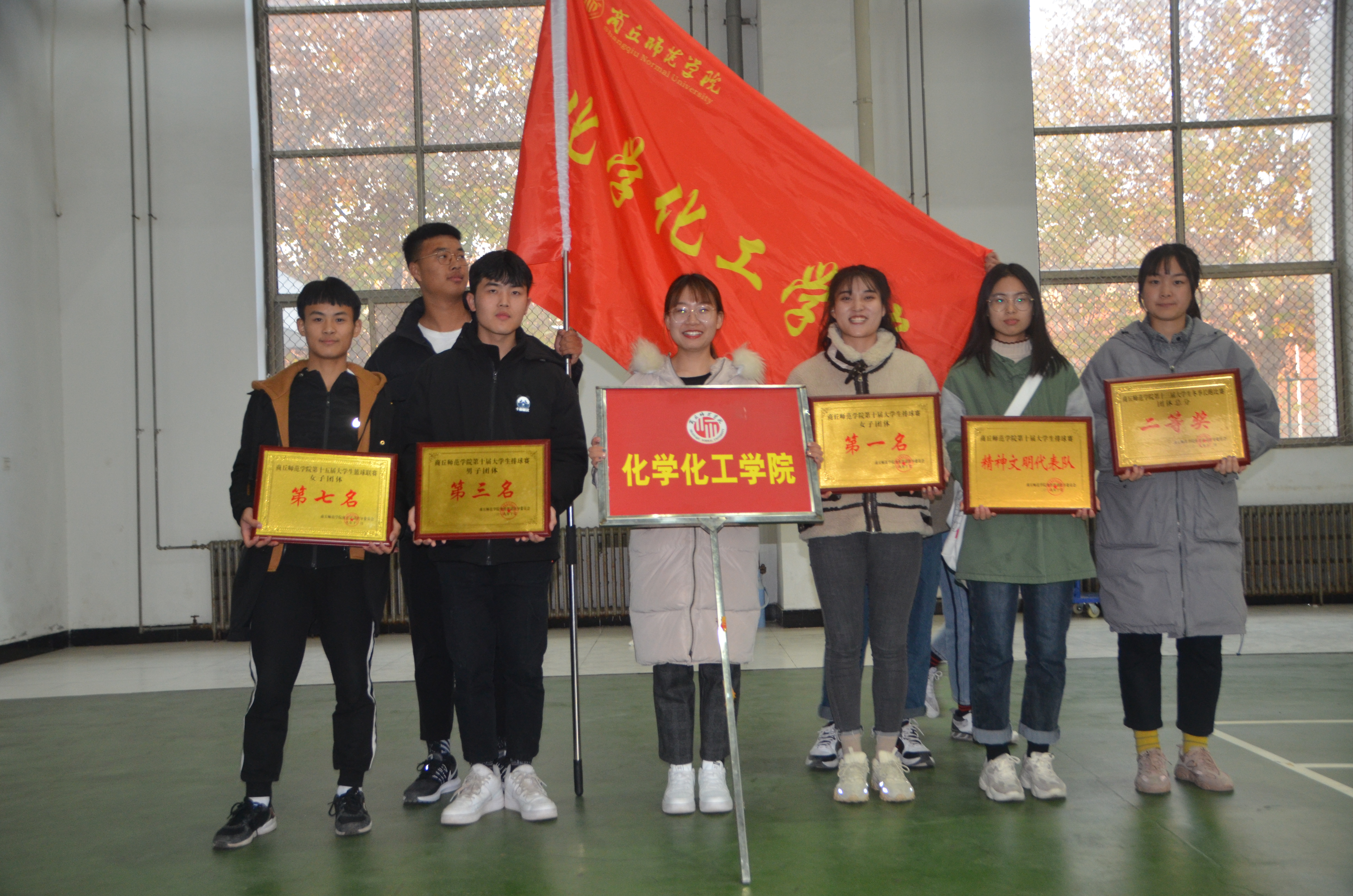 比赛还未开始,赛场上的气氛已经开始紧张起来,观众们翘首以盼期待比赛,各学院啦啦队情绪高涨,服务人员也已做好充分的准备。伴随着一声发令枪响,金年会jinnianhuicom的参赛学生冲上跑道,他们挥洒汗水,奋力拼搏,在整个比赛中始终保持着积极昂扬的精神状态。场外的啦啦队高亢的呐喊声扣人心弦,给参赛学生带来了激情,将比赛推向高潮。冲刺阶段,化院的运动健儿们不服输、不言弃,最终,取得了团体总分第三名(二等奖)的好成绩,在众多参赛选手中脱颖而出摘得九个证书。