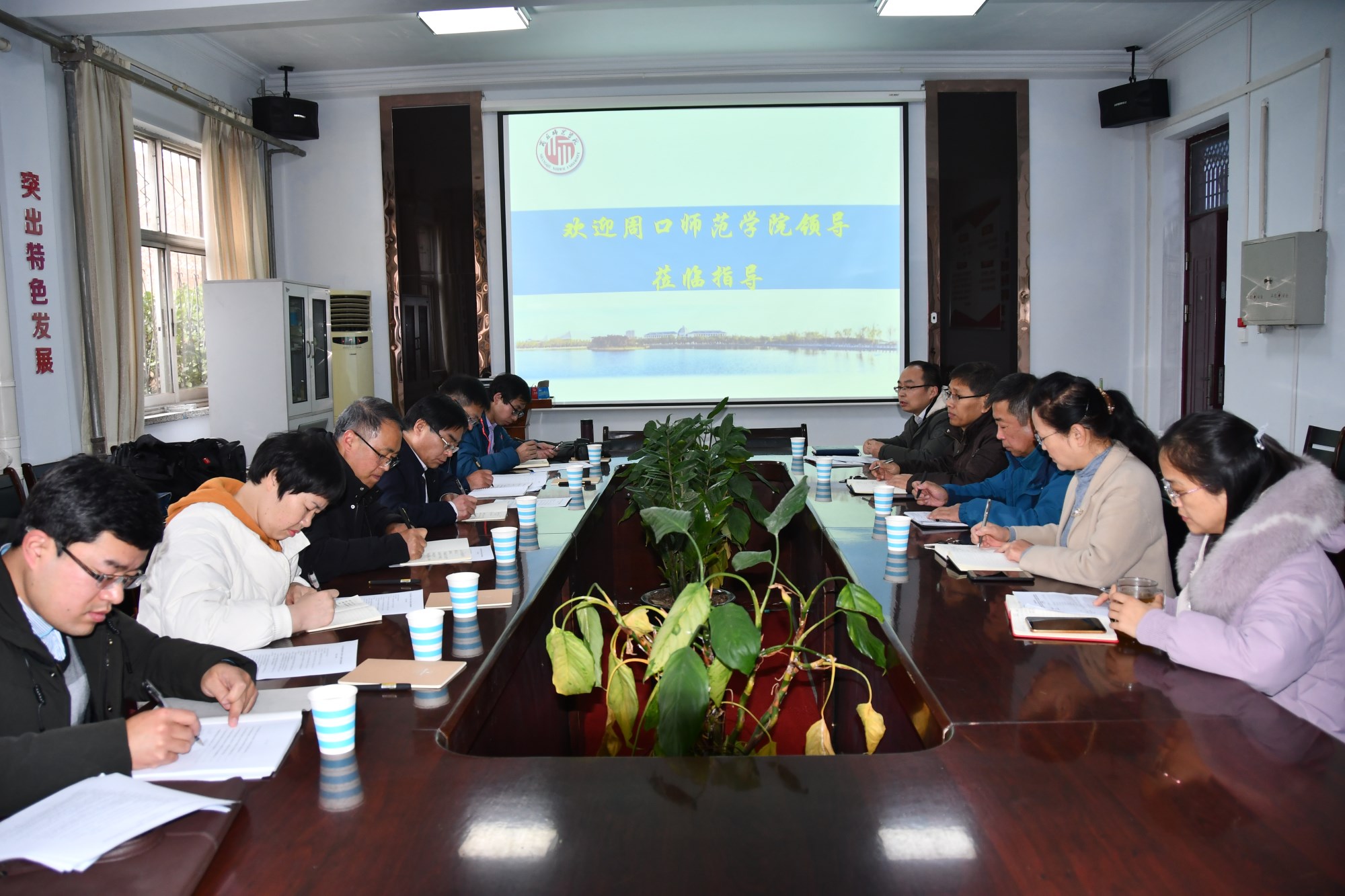12月18日下午,周口师范学院金年会jinnianhuicom院长王子云一行六人来校考察本科教学审核评估工作。金年会金年会jinnianhuicom接待王子云一行,双方在金年会jinnianhuicom会议室举行座谈交流会,金年会jinnianhuicom全体班子成员参加座谈。