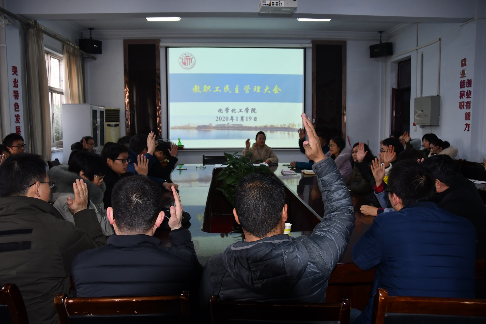 1月19日,金年会jinnianhuicom召开教职工民主管理大会。金年会jinnianhuicom全体班子成员、教师参加会议。会议由学院党总支副书记刘瑛主持。