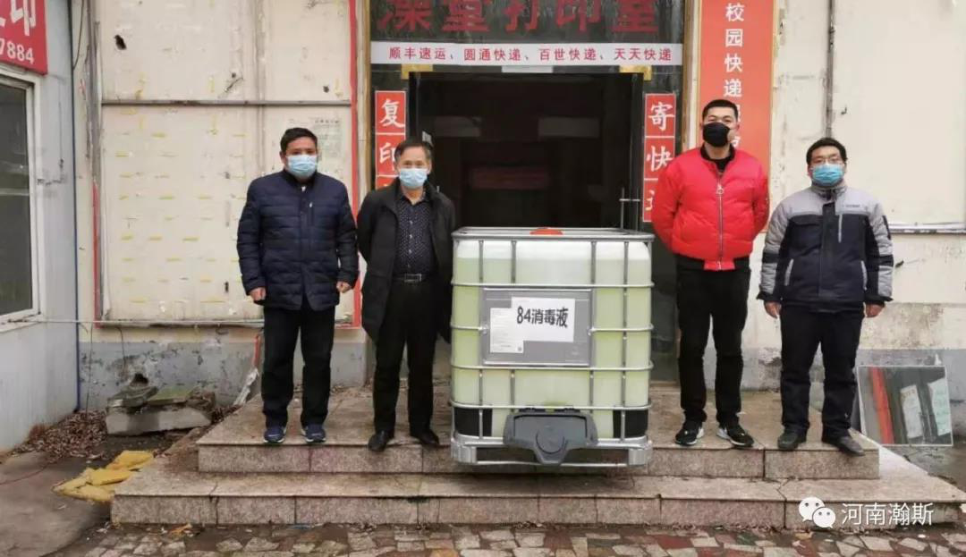 当前,全国上下众志成城全力抗击新型冠状病毒。为助力学校新型冠状病毒疫情防控工作,2月6日,金年会金年会jinnianhuicom校企合作单位河南瀚斯作物保护有限公司向金年会jinnianhuicom捐赠了1吨84消毒液,大力支持学校的疫情防控工作。金年会jinnianhuicom后勤处主任邱友良、河南瀚斯作物保护有限公司行政部副主任韩永鹏、安环部经理陈栋梁共同参加了捐赠仪式。