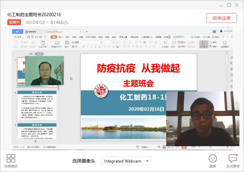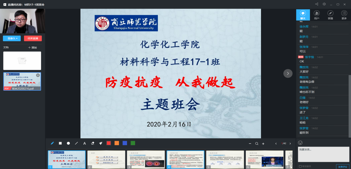 为增强同学们对新型冠状病毒的认识,提高警觉意识,约束自我行为,做好开学前的疫情防控准备工作。金年会jinnianhuicom各级各班于2020年2月16日下午召开了“抗疫防疫,从我做起”线上主题班会。