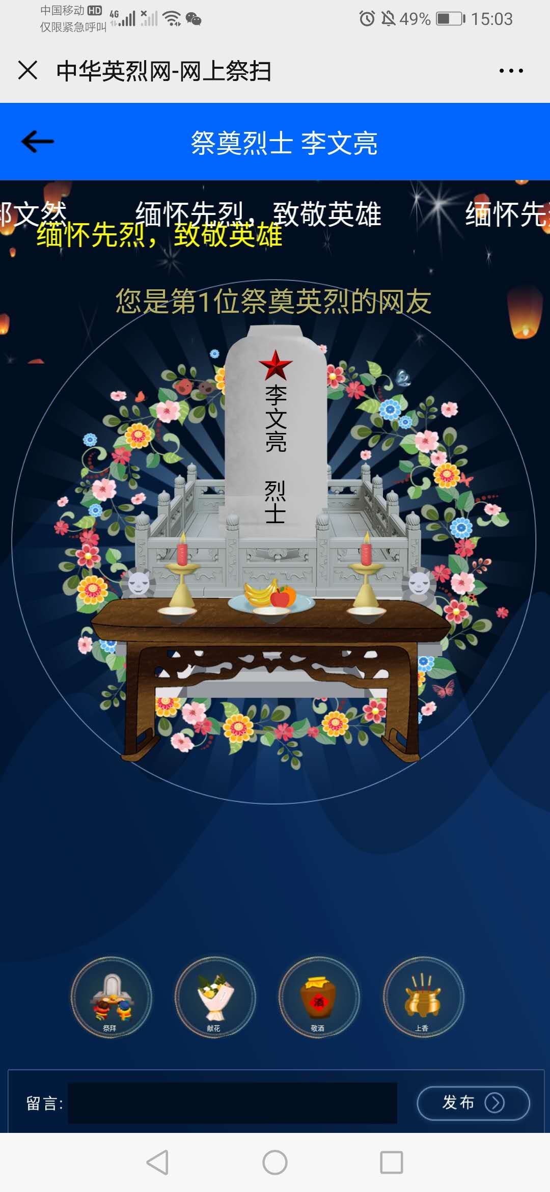 同学们还登陆中华英烈网,进行网上祭扫,表达对先烈们的哀思与敬意。