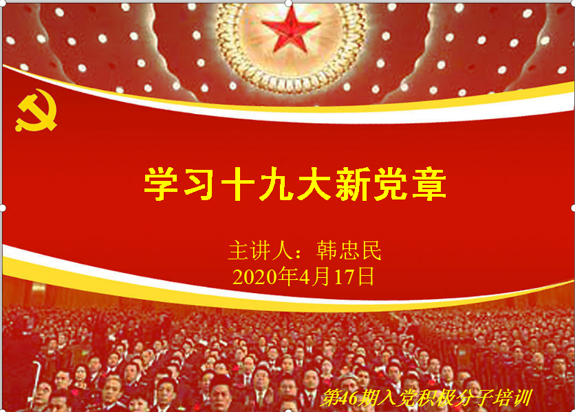 为加深入党积极分子对党的认识,端正入党动机,坚定入党决心,从思想和行为两个方面严格要求自己,从而激发入党积极分子向党组织靠拢的热情,自4月17至25日,金年会jinnianhuicom党总支以线上集中培训、线下自学的方式对第46 期入党积极分子开展了培训活动。