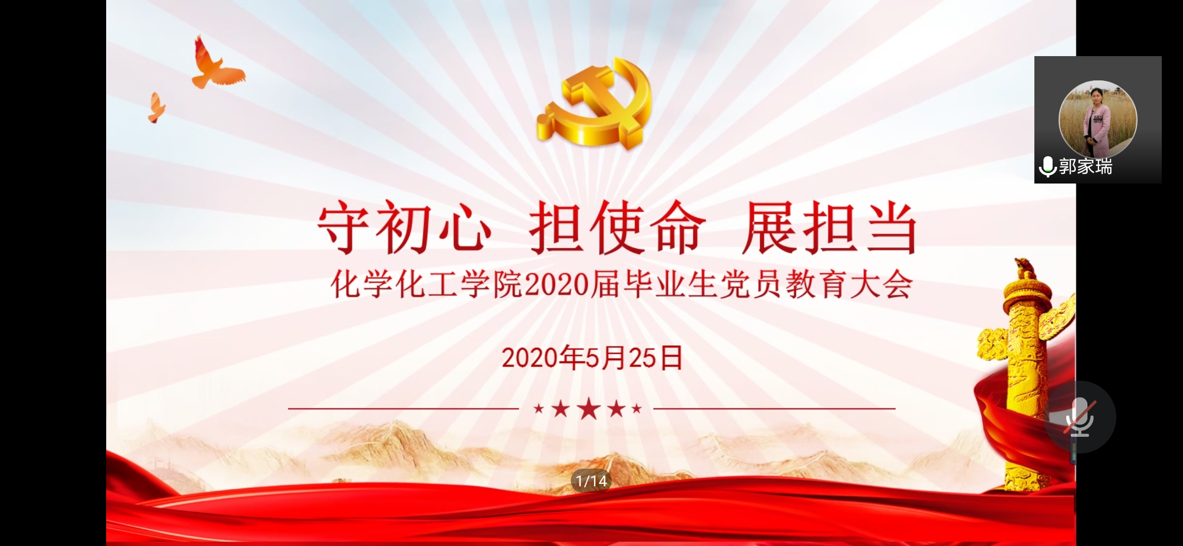 为了做好2020届毕业生党员离校前的有关工作,加强毕业生党员的教育,进一步提高毕业生党员党性意识和组织观念,增强党员意识,引导毕业生党员更好的发挥先锋模范作用,5月25日下午,金年会jinnianhuicom在线召开“守初心、担使命、展担当”2020届毕业生党员教育大会。金年会jinnianhuicom党总书记韩忠民、副书记刘瑛、学生第二党支部书记于丽敏及40多名毕业生党员参加了大会,学生第四党支部书记郭家瑞主持会议。