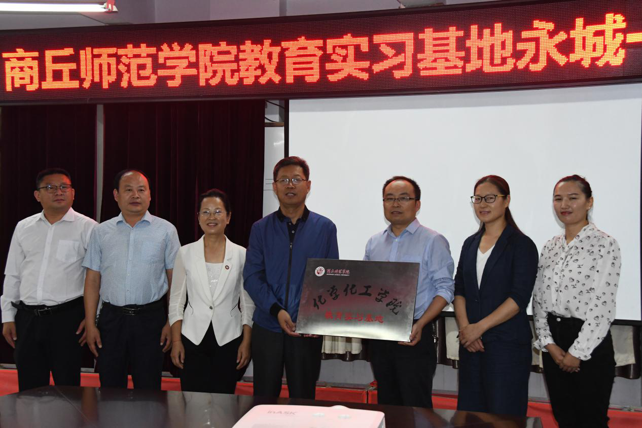 为做好化学专业学生教育实习工作,提升学生教学技能,9月22日化学化工学院党总支副书记刘瑛、副院长孟团结一行赴永城市第一高级中学签订教育实习基地协议并举行授牌仪式。