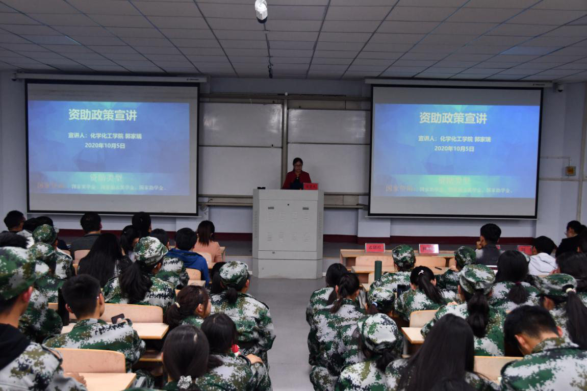 随后,教师代表李高伟结合自身经历分享了自己从本校学生最后成长为优秀博士生又回到母校工作的经历,为同学们树立了榜样。19、20级学生代表的发言,表达了他们对金年会jinnianhuicom和化院的信任与成为更好自己的决心。郭家瑞进行资助政策宣讲,用精炼的语言从奖、助、贷、补、减五个方面讲解了资助工作有关程序、条件、要求、注意事项等,希望同学们对资助工作有更深入细致的了解。