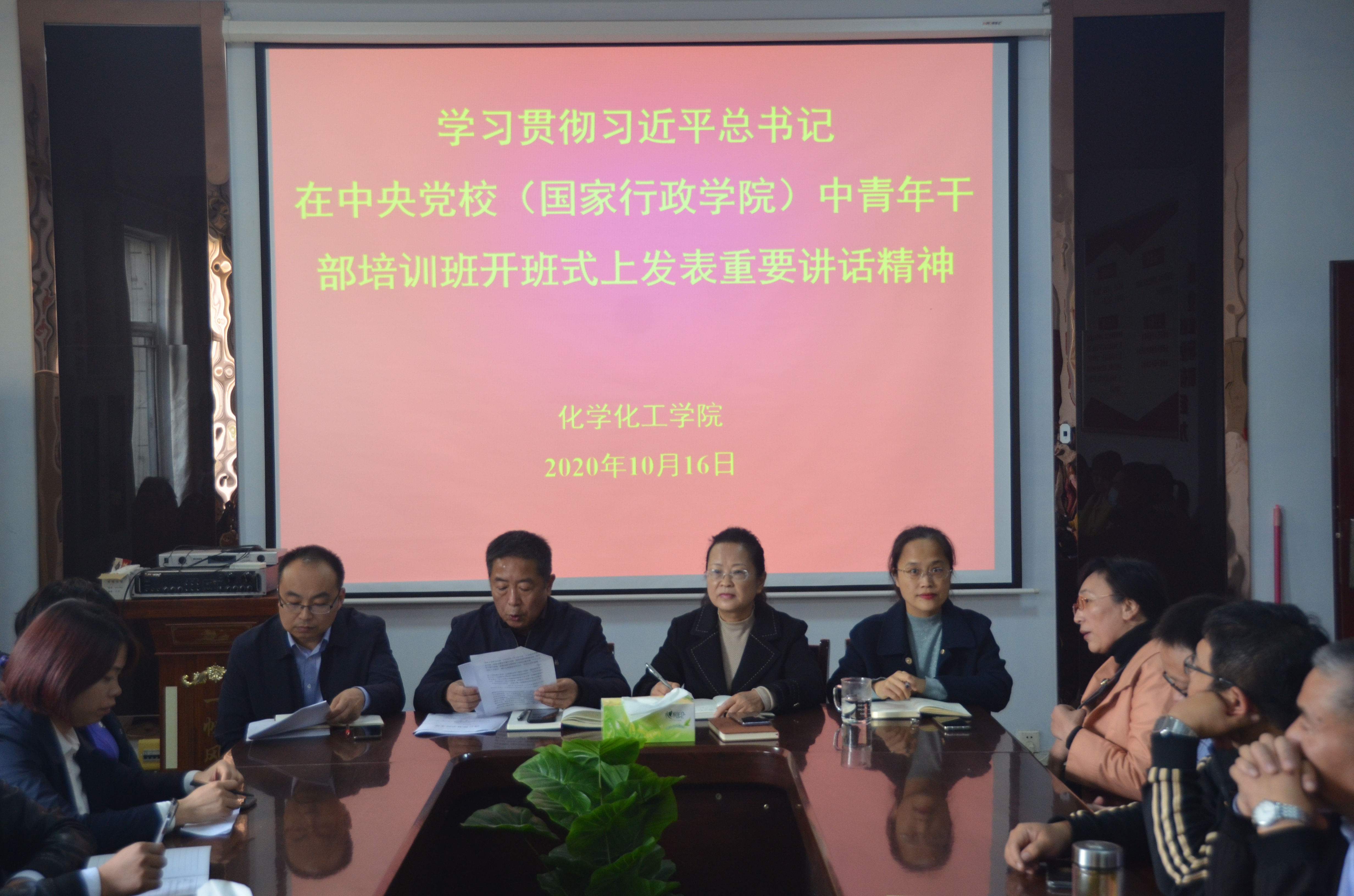 深入学习习近平新时代中国特色社会主义思想,提高金年会中青年教师解决实际问题的能力,2020年10月16日下午,金年会jinnianhuicom于睢阳校区7号楼会议室组织全体教职工学习“习近平在中央党校(国家行政学院)中青年干部培训班开班式上的重要讲话”精神。会议由党总支书记韩忠民主持。