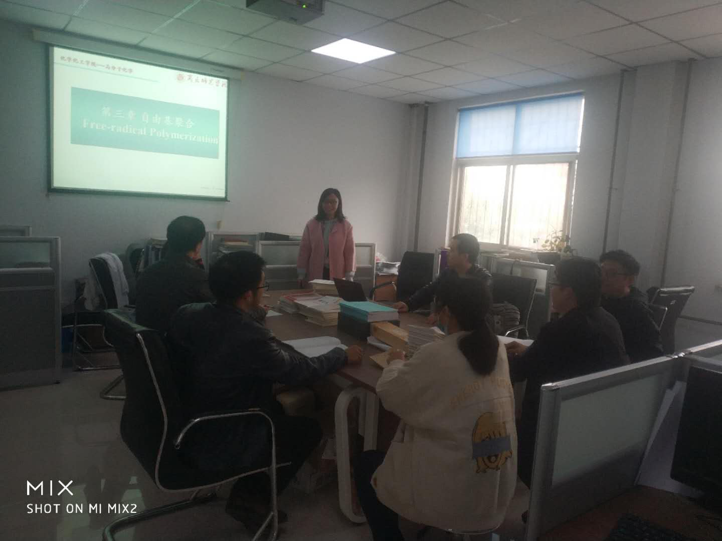 教研活动中,邵梅玲老师讲授了公开课,内容为《高分子化学》第三章自由基聚合中反应动力学的相关知识。《高分子化学》为校级范式改革课程,邵老师讲授的内容清晰,定位明确,重难点突出。大家听完之后纷纷发表了自身的看法,并提出了宝贵的建议。