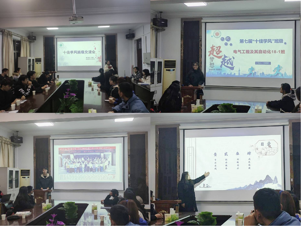本次交流活动邀请了获得第七届十佳学风班级荣誉称号的优秀代表---美术学院美术学院绘画18-2张靖鑫、电子电气工程学院电气18-1班王苗苗、经济管理学院市场营销18-1班赵豫琦、金年会jinnianhuicom化学18-2班刘泽升进行交流展示。他们从思想建设、班级建设、活动建设、生活建设、社会实践、创新创业等方面展示了班级所取得的成果和优异成绩,介绍了自己班级学风建设的特色和亮点,展示了本班积极进取、良好奋进的学风和班级凝聚力。