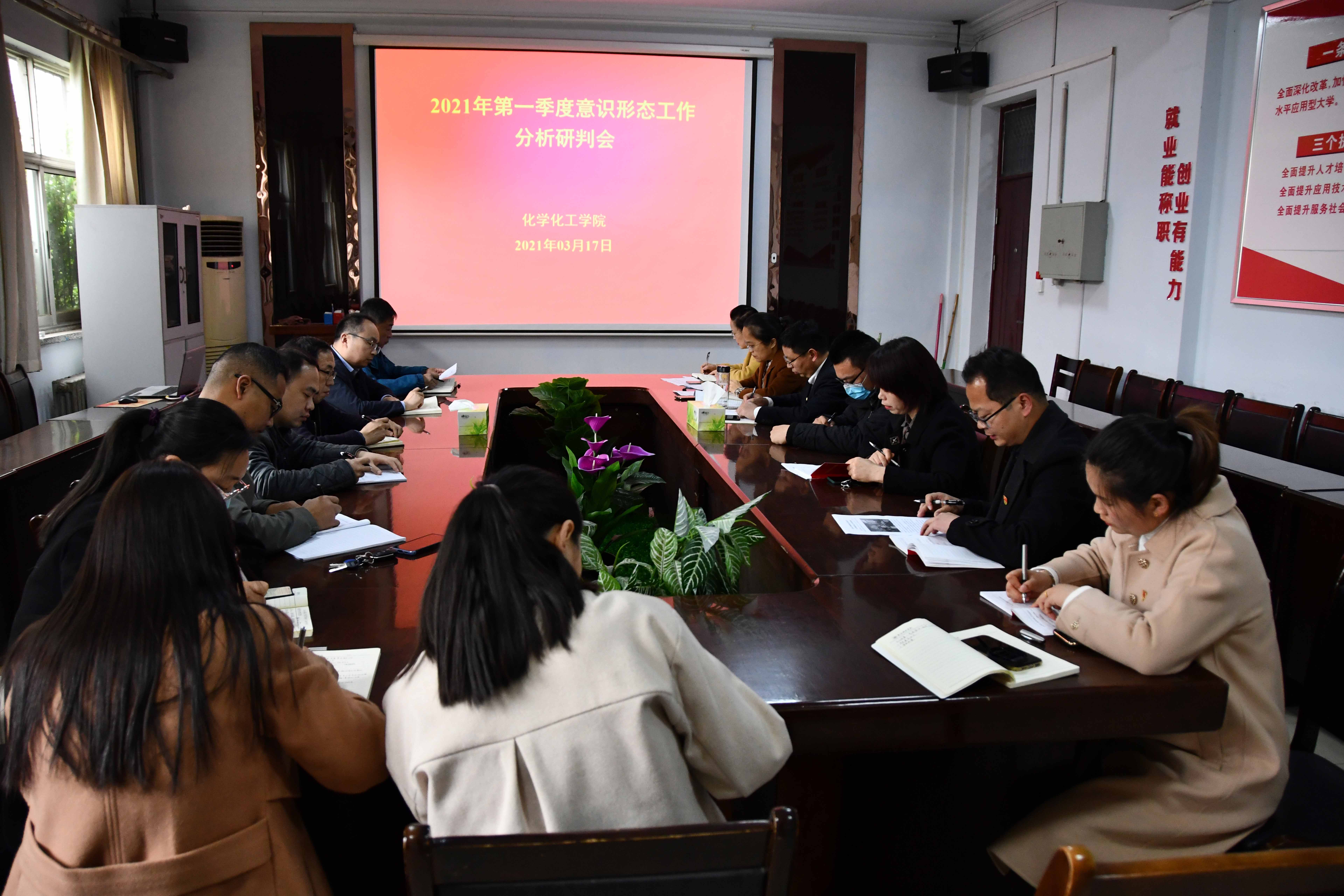 3月17日下午,金年会jinnianhuicom党总支于7号楼会议室召开2021年第一季度意识形态工作分析研判会。学院领导班子、党支部书记、办公室主任、教学办主任、辅导员参加会议。院党总支书记韩忠民主持会议。