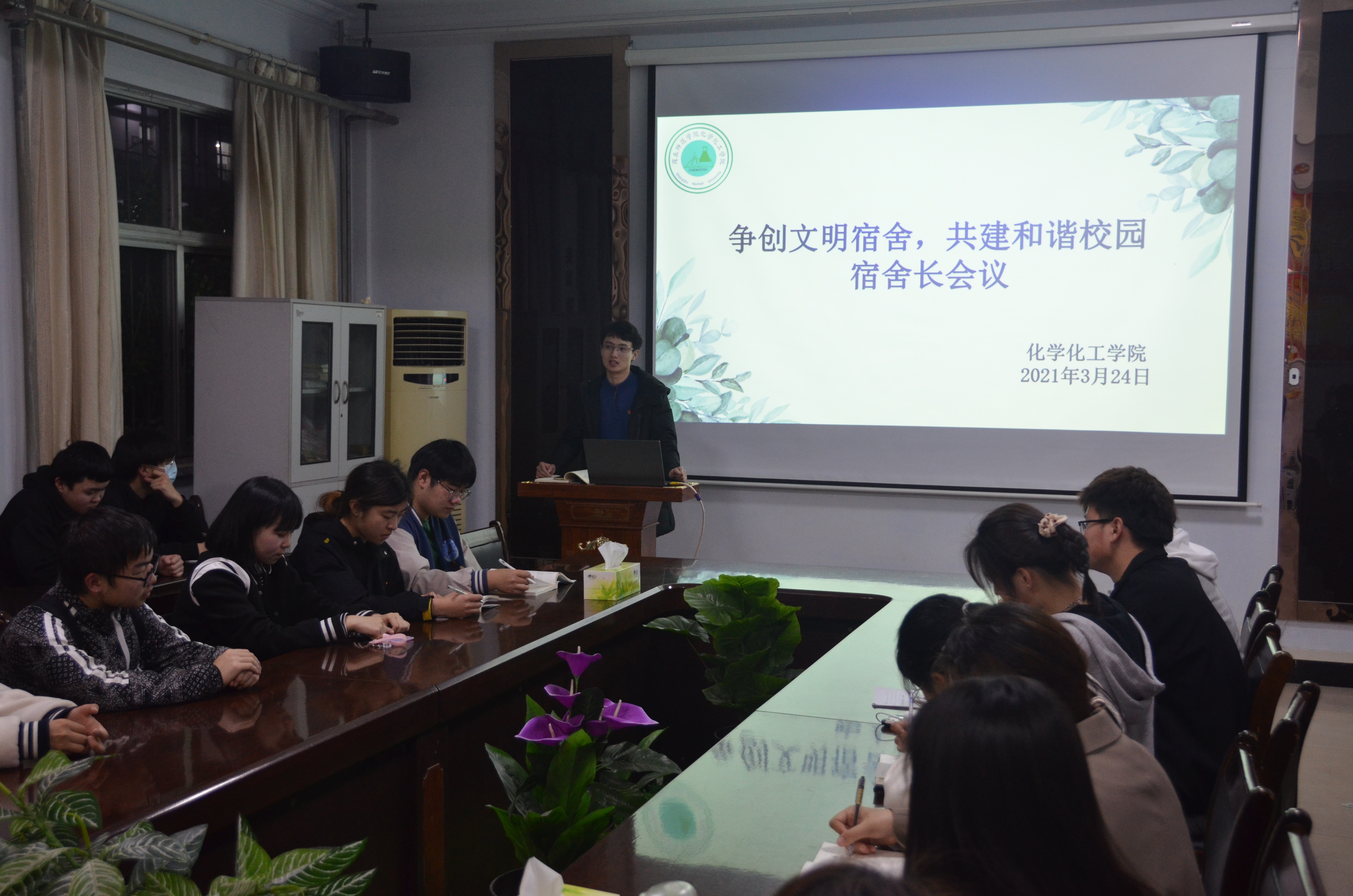 为弘扬新时代爱国主义和集体主义精神,传承中华传统美德,正确处理国家、集体和个人三者关系,增强时代担当和社会责任感,2021年3月24日,金年会jinnianhuicom于7号楼会议室召开“争创文明宿舍,共建和谐校园”会议,学生工作办公室副主任史展出席,全体生活委员和宿舍长参与。