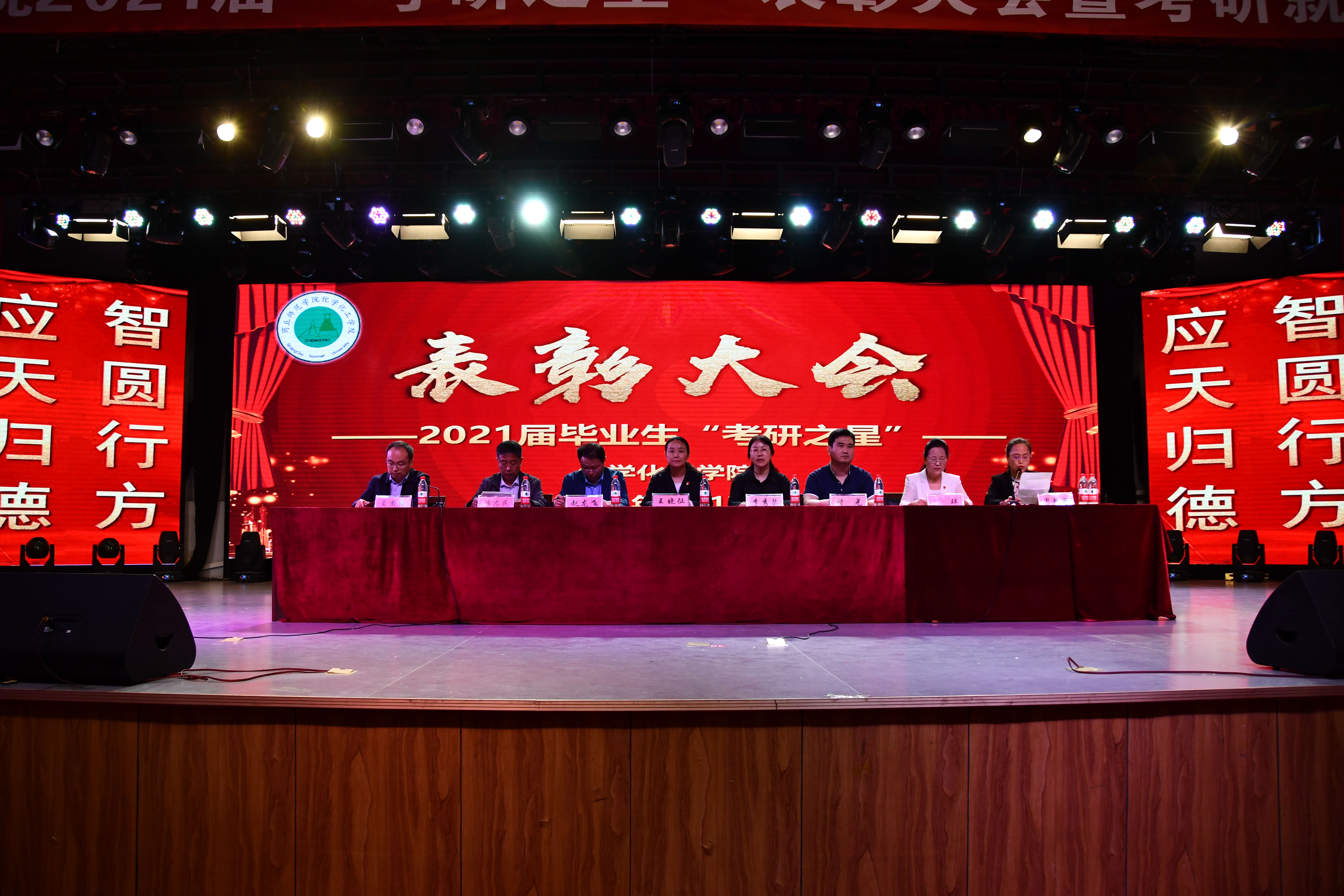 表彰大会在庄严的国歌声中拉开序幕。周艳丽宣读受表彰同学名单,各位领导为“考研之星”代表颁奖。教师代表王涛的发言,表达了对考研成功的学生的祝贺。