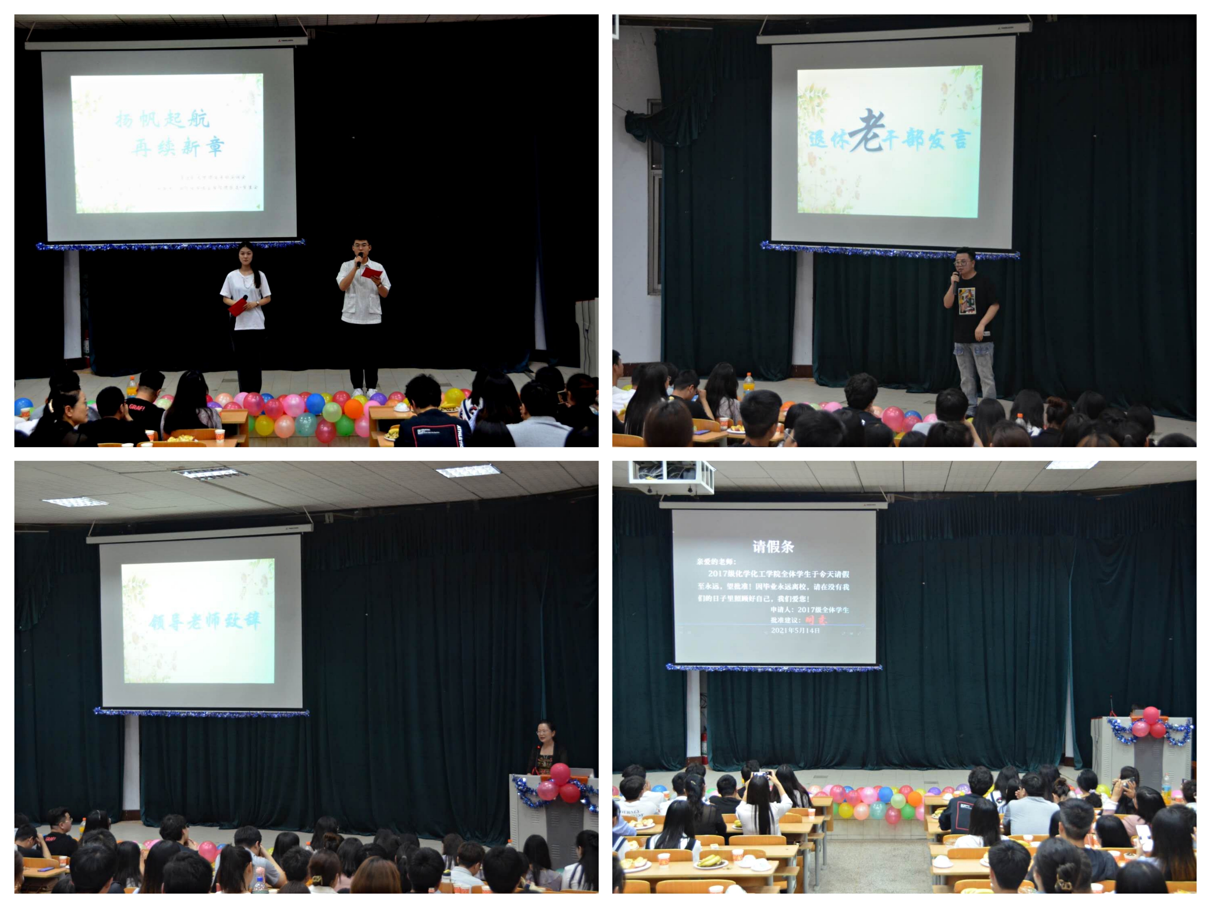 学子们的成长离不开学校领导和老师们的关怀,活动开始,放映了老师们给予毕业生团学干部的寄语祝福。刘瑛在致辞中充分肯定了金年会团学干部为学院发展做出的突出贡献,希望毕业生在今后新的岗位继续严格要求自己,发挥模范作用。原学生会主席魏世民希望大家一起努力,团结一致,更好地服务同学们成长,为学院的发展贡献力量。团总支·学生会各部门都准备了精彩节目,为毕业生送去真诚的祝福。精彩的节目收获了阵阵掌声。活动最后,领导老师和毕业生团学干部进行合影留念,本次茶话会活动圆满结束。