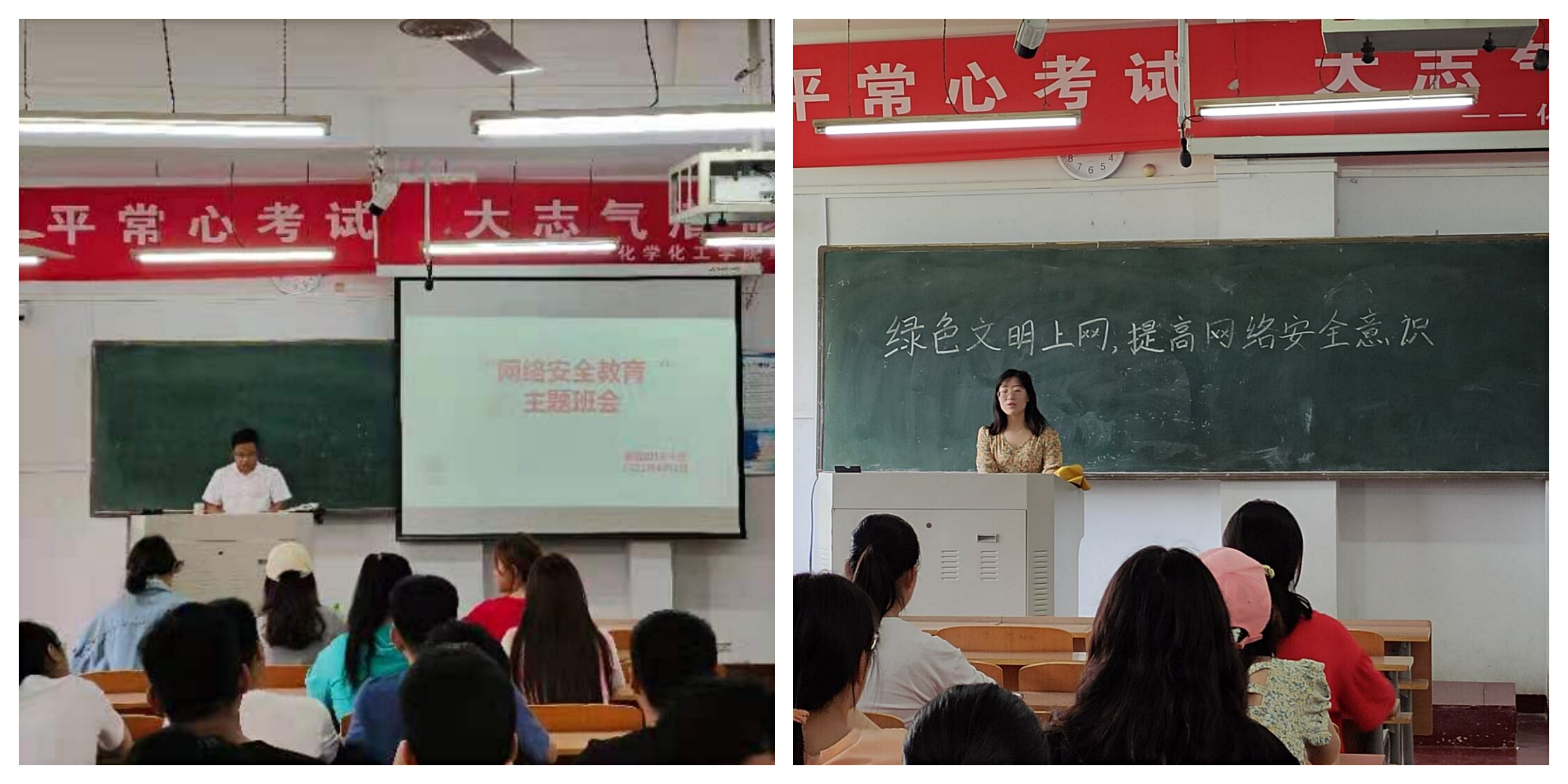 材料20-1班以"共建网络安全,共享网络文明"为主题,班主任李盼为大家讲解了网络安全相关知识,并提出以后要加强网络安全知识宣传教育,增强班级全体成员网络安全意识。化学20–1班主任董辉强调要文明上网,绿色上网,在网络上注意自己的一言一行,提高自我防范意识,远离网络陷阱。化学20-4班主任王鑫围绕“网络的积极作用、消极作用和我们身边常见的网络犯罪行为”三方面对同学们进行教育引导,并就“网络带给我们的利与弊”这一话题组织学生进行讨论。新能源20-1班以“维护网络安全,共建平安校园”为主题,班主任刘猛围绕“网络的利与弊”、“网络诈骗”、“网络造谣”以及“我们该怎么做”四个部分进行讲解,引导学生正确认识网络这把“双刃剑”,拒绝各种网络的不良诱惑。