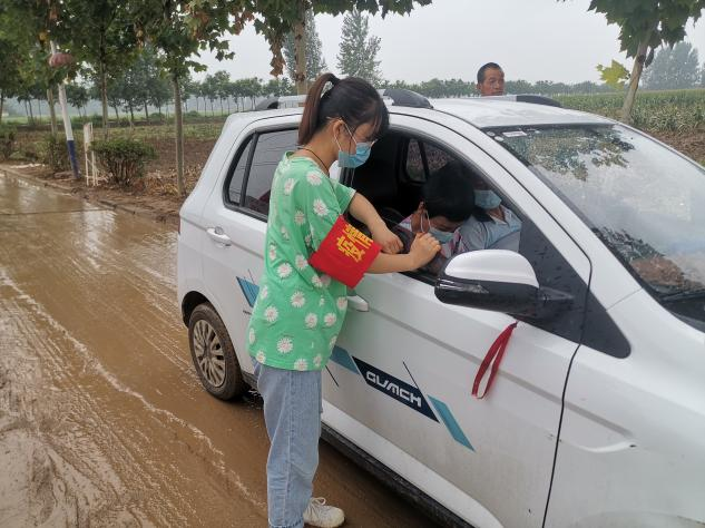 洪灾过后,一场疫情危机再次降临。化学20-3班的王晨红主动申请加入到村委会青年大学生志愿者队伍中。