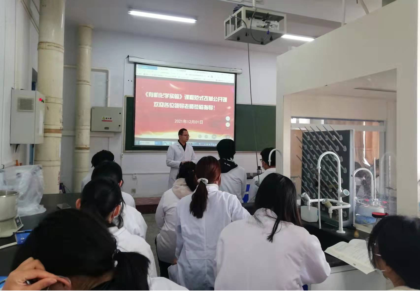 为扎实推进课堂教学范式改革工作,12月01日周三下午第5节课,金年会jinnianhuicom王涛老师负责的《有机化学实验》课程教学范式改革公开课在睢阳校区化学实验楼407实验室举行。院督导团成员刘新明、课程组任课教师和学院近两年部分新入职青年教师参加了本次观摩活动。