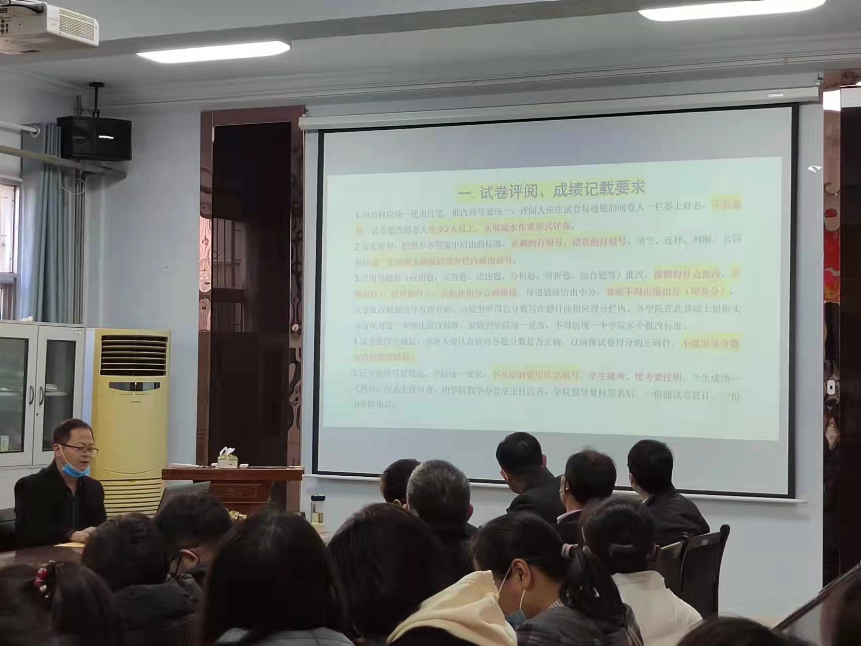 会议开始,王涛从试卷评阅、成绩记载,试卷装订,课程目标达成度评价报告撰写等方面介绍了教务处下发的《关于2021年秋季学期期末考试的通知要求》。其次,反馈了学校督导团督查金年会春季学期期末考试试卷批阅及课程目标达成度报告撰写过程中出现的一些共性问题,并要求老师们在今后的工作中严格按照专业认证要求,切实提高试卷命题的质量,严把试卷质量关,合理的评价课程目标的达成情况。最后,各位老师针对以上问题展开了深入的交流和讨论。
