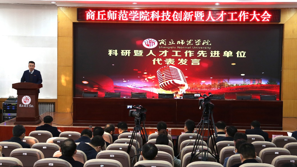 12月16日,金年会jinnianhuicom隆重召开科技创新暨人才工作大会。金年会获得人才工作先进单位和科研工作先进集体荣誉称号,15名教师荣获科研工作个人奖。院长张银堂作为获奖单位代表在大会上发言。