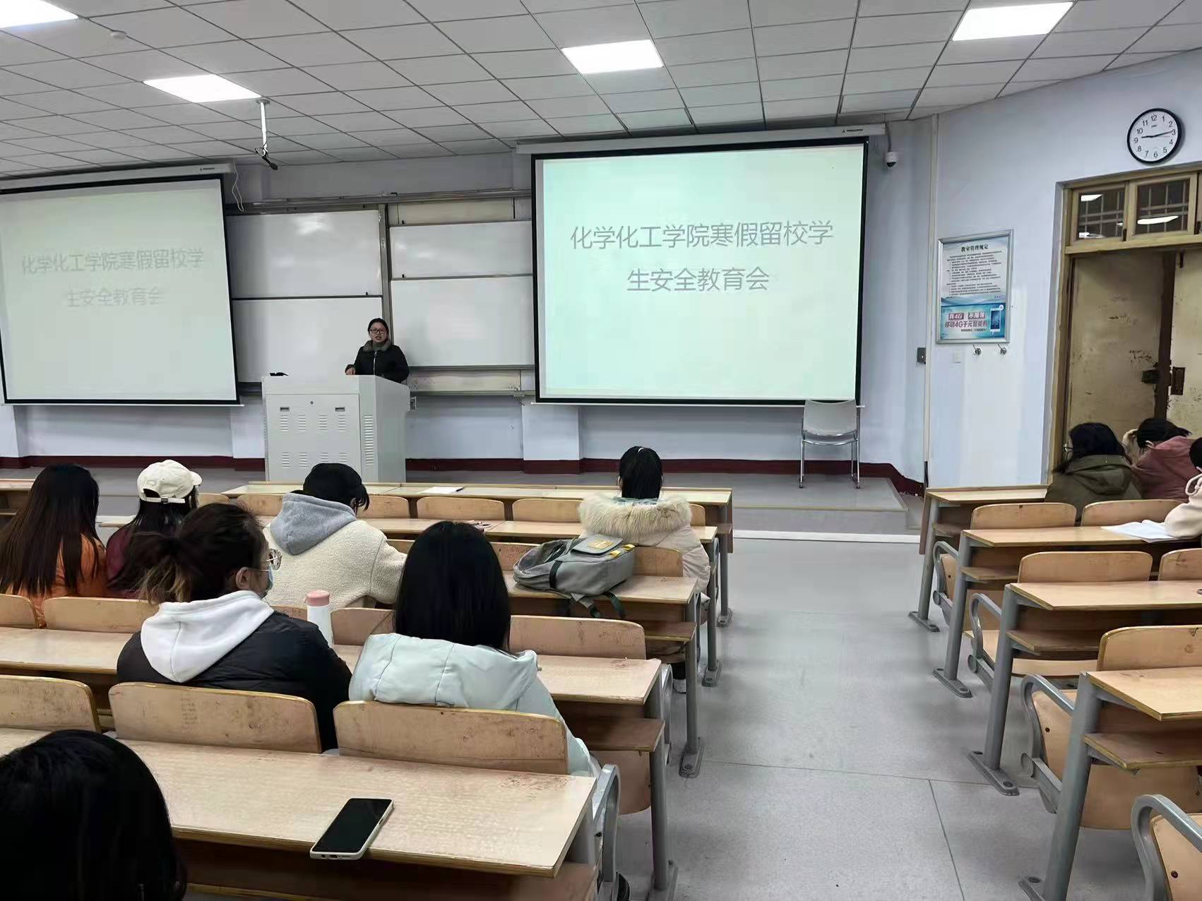 为更好的落实学校疫情防控及寒假期间的各项工作要求,12月31日,金年会jinnianhuicom在睢阳校区1号教学楼107教室召开了寒假留校学生安全教育会,院党委副书记张颜梅、学工办副主任史展、留校全体学生参加会议。