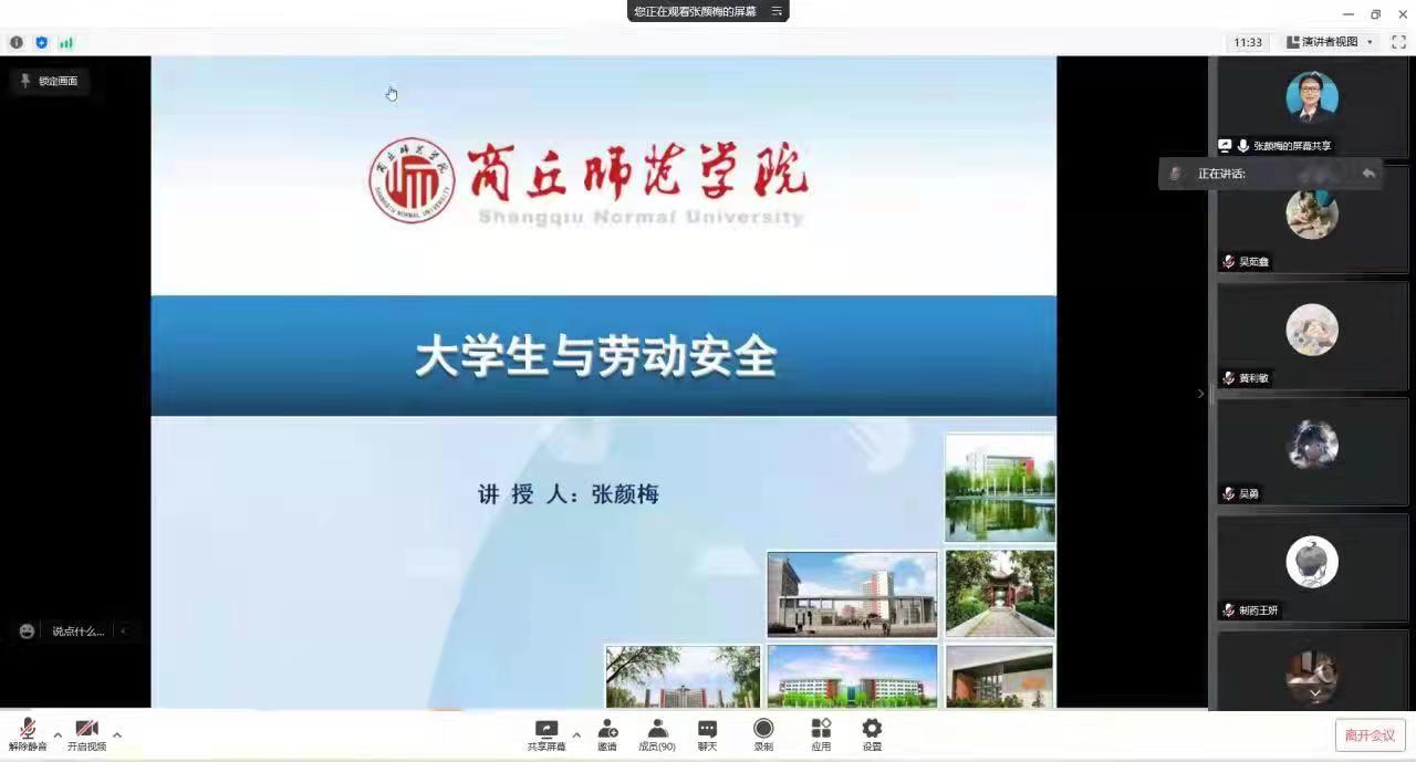 为进一步加强学生对劳动安全的理解,增强劳动安全意识。3月17日,金年会jinnianhuicom通过腾讯会议开展了大学生与劳动安全线上主题讲座。主讲人为院党委副书记张颜梅。19级、20级全体班委和宿舍长参加此次讲座。