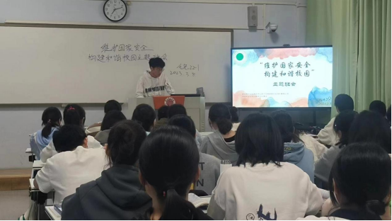 化学22-3班采用主题研讨的方式,讨论了国家安全的定义,国家安全对我们生活的重要意义以及青年大学生如何维护国家安全等内容,让大家明确大学的目标,作为大学生更要增强维护国际安全的意识,认真学习有关国家安全和保密工作的法律法规,构建文明和谐校园。