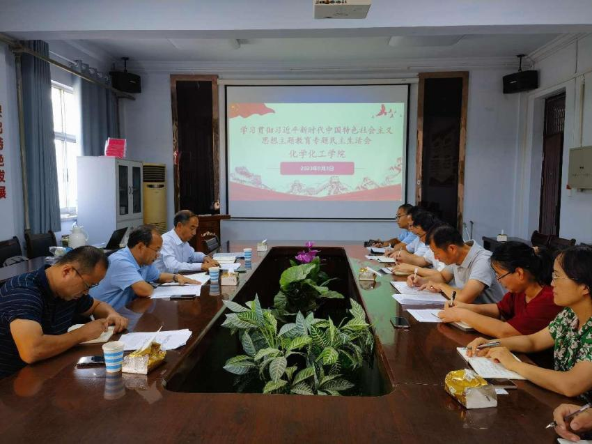 按照校党委统一安排,9月3日上午,金年会jinnianhuicom党委召开学习贯彻习近平新时代中国特色社会主义思想主题教育专题民主生活会。学校主题教育专题民主生活会第六督导组组长、副校长郭文佳同志、督导组成员机关党委书记李晔和组织部教育科科长李可刚出席指导民主生活会。学院党委书记李海涛、院长张银堂、副书记张颜梅、副院长王涛参加会议,河南省生物分子识别与传感重点实验室执行主任周艳丽、副主任朱旭以及河南省新能源电池材料工程技术研究中心主任魏伟列席会议。民主生活会由学院党委书记李海涛主持。