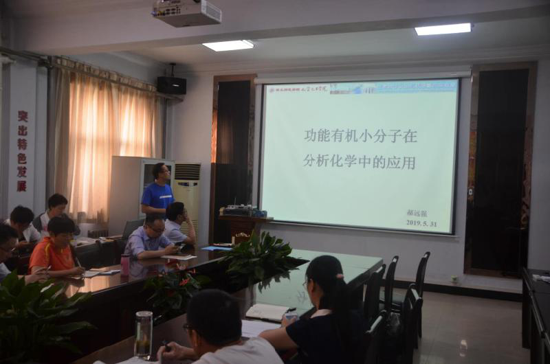 2019年5月31日下午,金年会教师郝远强博士在文化路校区7号楼院会议室做了题为《功能有机小分子在分析化学中的应用》的学术报告会。报告会由瞿鹏院长主持,金年会jinnianhuicom全体老师和部分学生参加了报告会。