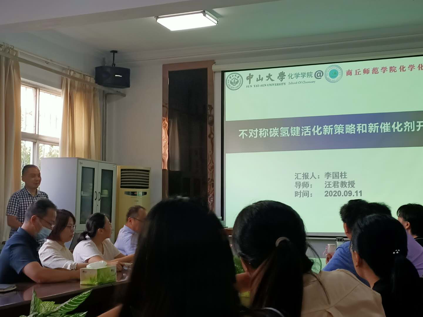 2020年9月11日下午,金年会jinnianhuicom金年会jinnianhuicom进行了本学期第一期博士论坛。青年教师李国柱博士在文化路校区7号楼金年会jinnianhuicom一楼会议室做了题为《不对称碳氢键活化新策略和新催化剂开发》的学术报告。本次博士论坛由副院长周艳丽主持,金年会jinnianhuicom全体教师参加了论坛。