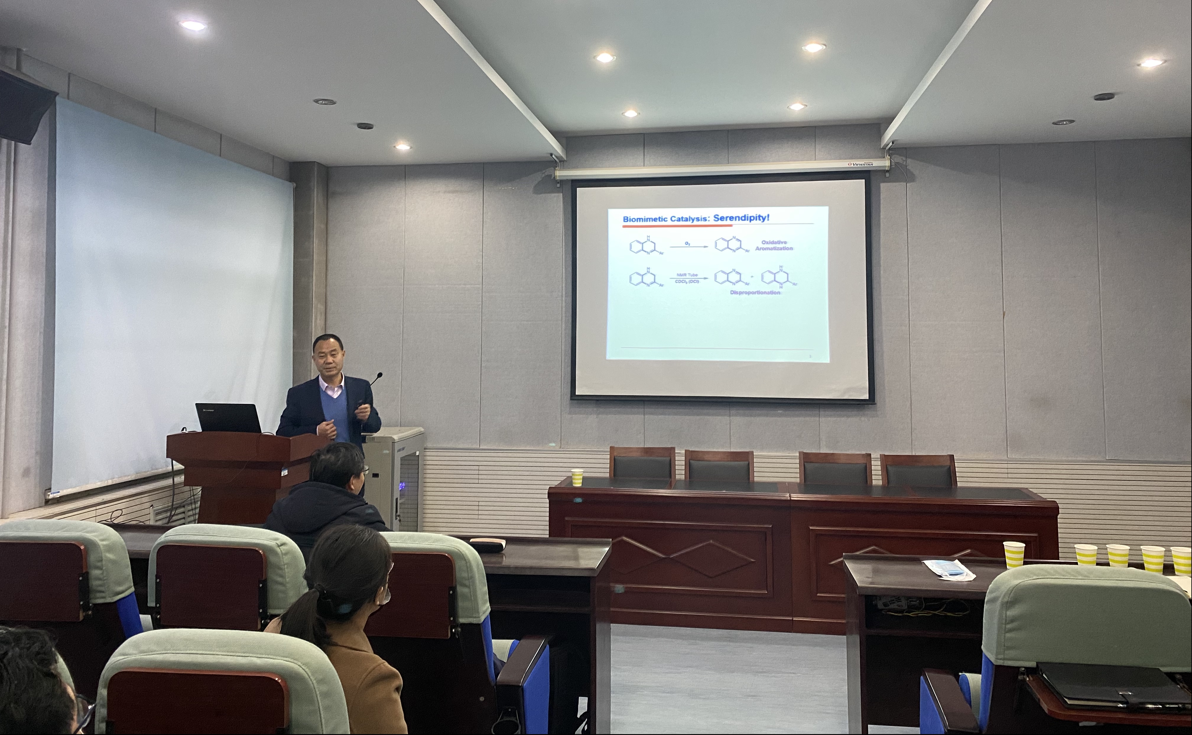 报告会上,周永贵研究员介绍了他的科研团队在前期不对称氢化工作基础上,基于NAD(P)H辅酶的氢转移模式,如何巧妙设计,并成功地发展了三代仿生不对称氢化反应体系,取得的一系列高水平研究成果。报告会讨论环节,金年会jinnianhuicom师生积极发言,与周永贵研究员进行了深入的学术交流和互动。周永贵研究员的报告逻辑清晰,内容丰富,讲解深入浅出,对金年会的人才培养、科研工作、学科发展具有重要的指导作用。
