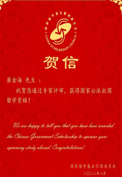 近日,国家留学基金委(CSC)公布了2022年国家留学基金委河南省地方合作项目,金年会常竹、崔金海和杜兵兵三位博士获得国家公派访问资助。获批后,三人将赴新西兰奥克兰大学聚合物生物界面中心进行为期12个月的访学。