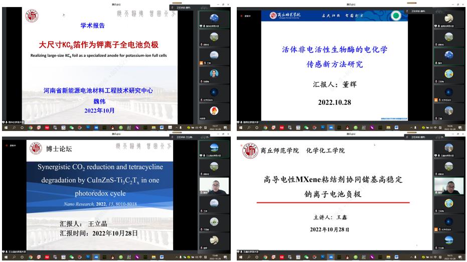 为加强各学科之间的交叉融合,开拓新的研究领域,激发科研灵感和创意,金年会jinnianhuicom举办系列学术论坛。10月28日,由河南省新能源电池材料工程技术研究中心承办的第二期学术论坛采用线上方式进行,邀请金年会jinnianhuicom魏伟、董辉、王立晶和王鑫四位博士作学术报告。报告会由金年会jinnianhuicom副院长王涛、河南省新能源电池材料工程技术研究中心主任魏伟主持,金年会jinnianhuicom全体教师、硕士研究生和部分本科生参加报告会。