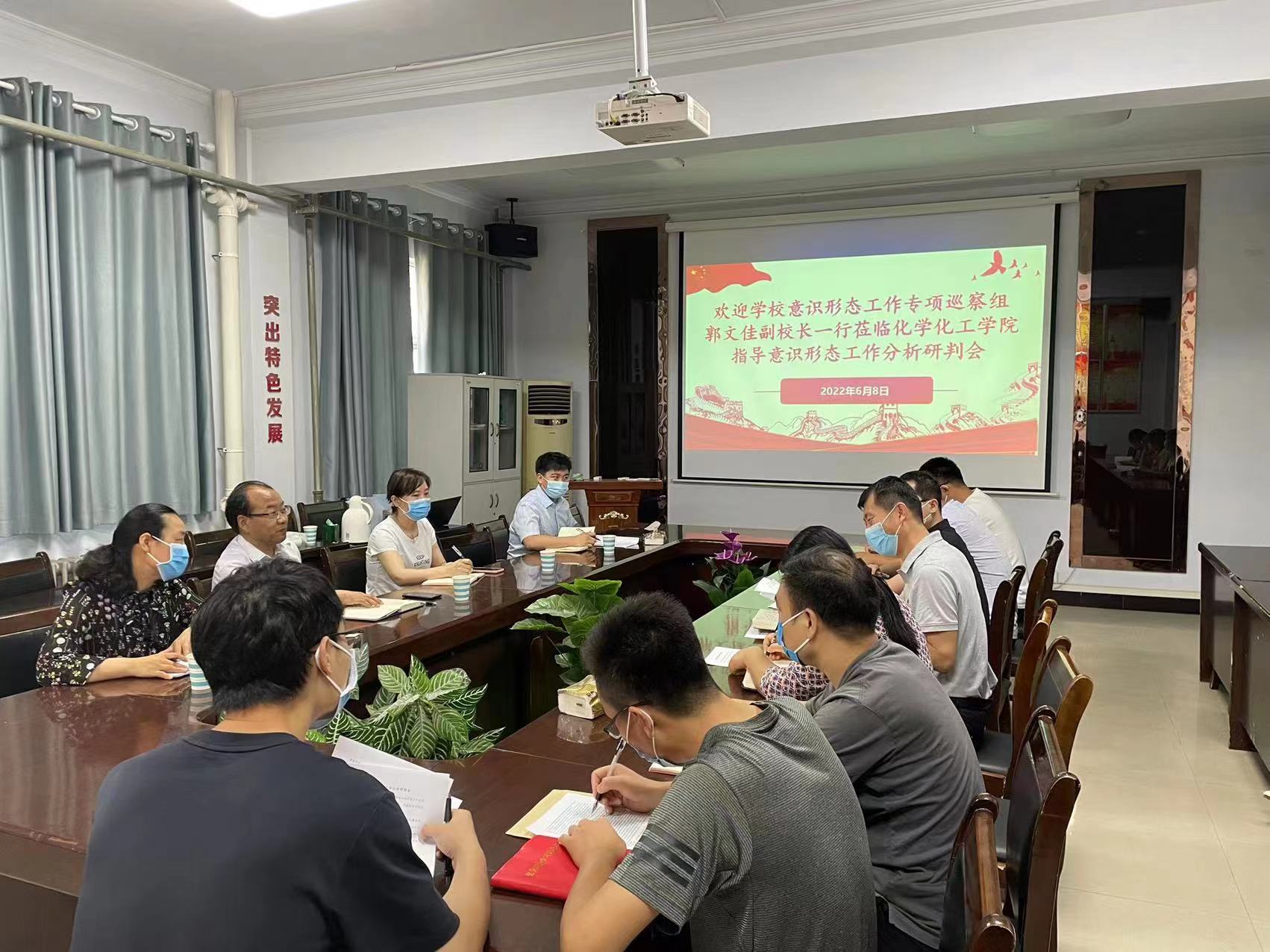 6月8日,金年会jinnianhuicom召开2022年第二季度意识形态工作分析研判会,学校意识形态工作专项巡察第七组组长、副校长郭文佳、成员学生处处长王晓征、副处长李杰、宣传部王飞翔老师一行莅临指导。此次会议由院党委书记李海涛主持,党委副书记张颜梅、副院长王涛、党支部书记及全体辅导员参加会议。