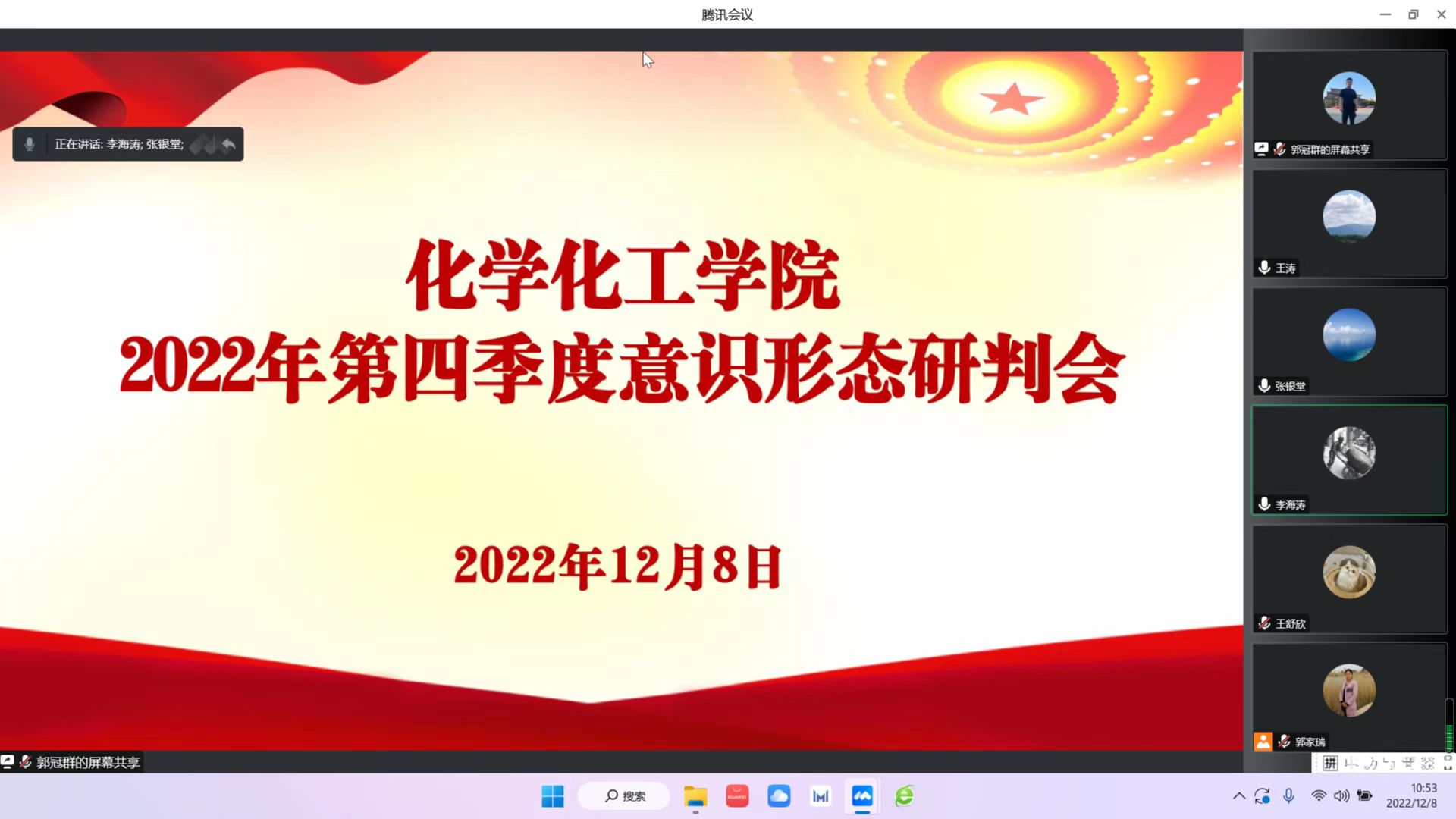 12月8日,金年会jinnianhuicom党委在线召开了2022年第四季度意识形态研判会,对本季度可能出现的风险点进行了研判分析。学院领导班子、党支部书记以及全体辅导员参加了会议。院党委书记李海涛主持会议。