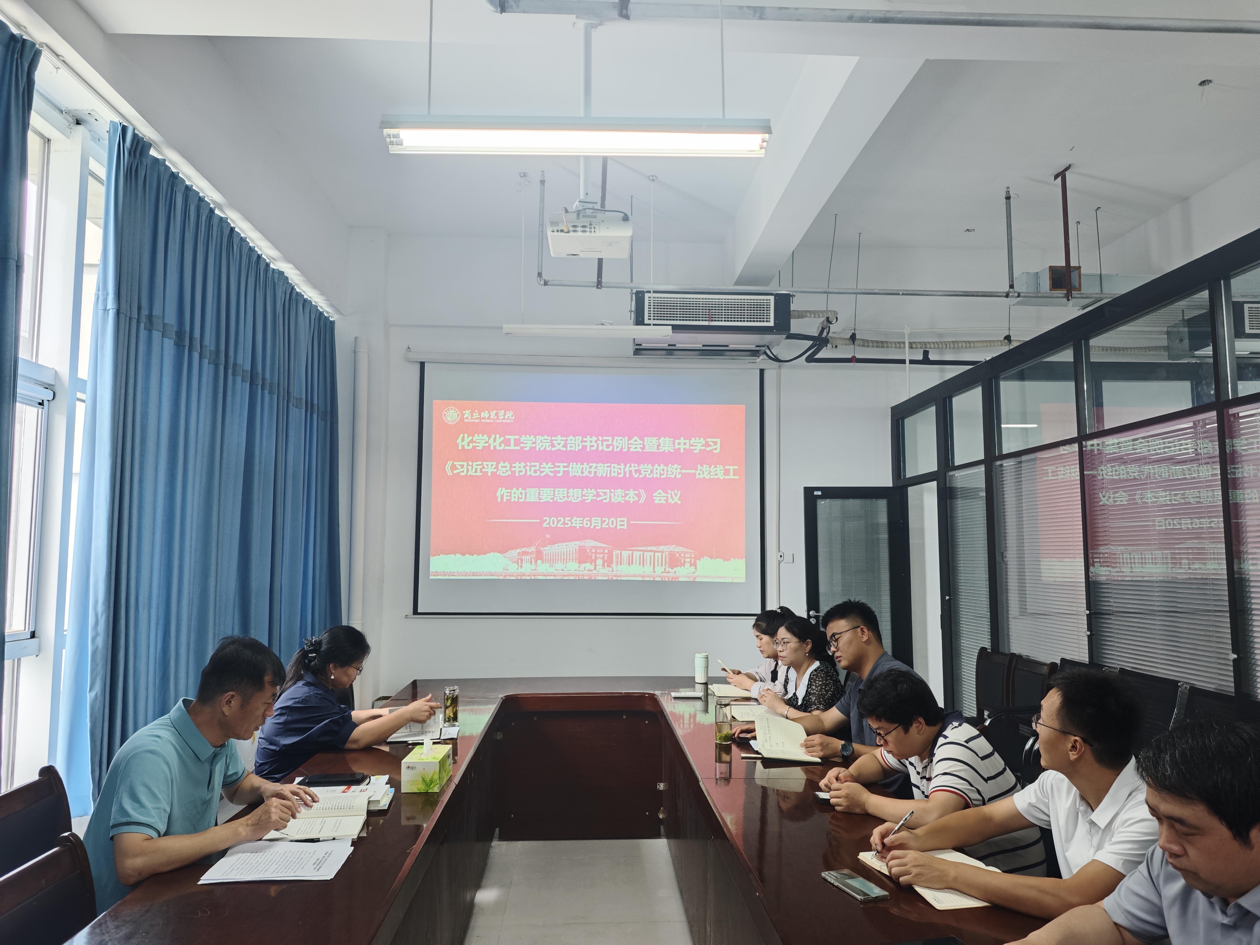 6月20日,金年会jinnianhuicom党委召开6月份党支部书记例会暨《习近平总书记关于做好新时代党的统一战线工作的重要思想学习读本》第五章专题学习会议。会议由党委书记李海涛主持,党委副书记张颜梅及各党支部书记参加会议。