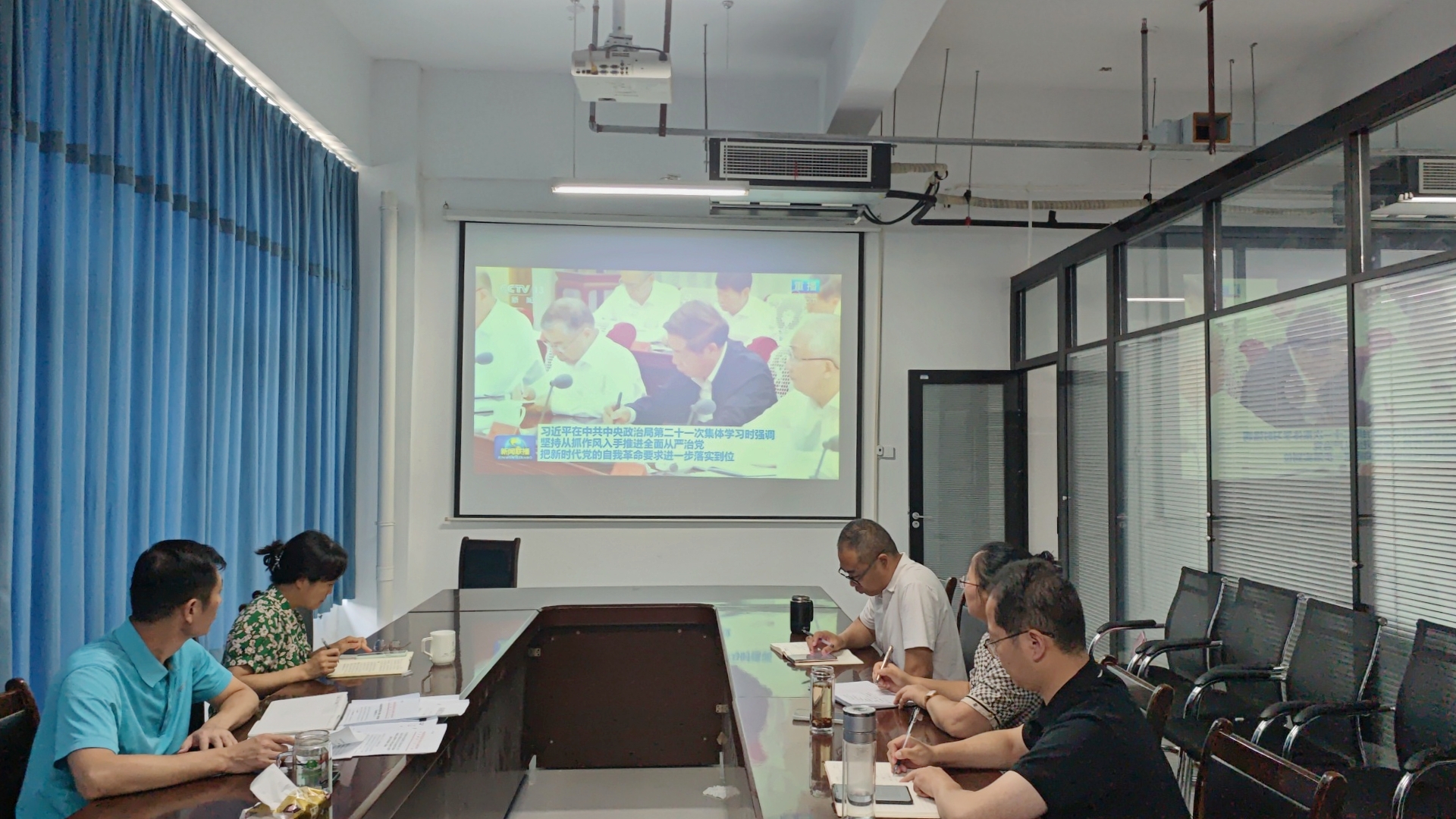 会议伊始,李海涛同志对习近平总书记在二十届中央政治局第二十一次集体学习时的重要讲话精神进行了全面且深入的传达学习,强调全体参会人员要深刻领会讲话的核心要义,将其融入到学院党的建设各项工作中。会议围绕“坚持从抓作风入手推进全面从严治党、把新时代党的自我革命要求进一步落实到位”主题展开集中学习,深入把握党中央关于推进自我革命、强化作风建设的总体要求。