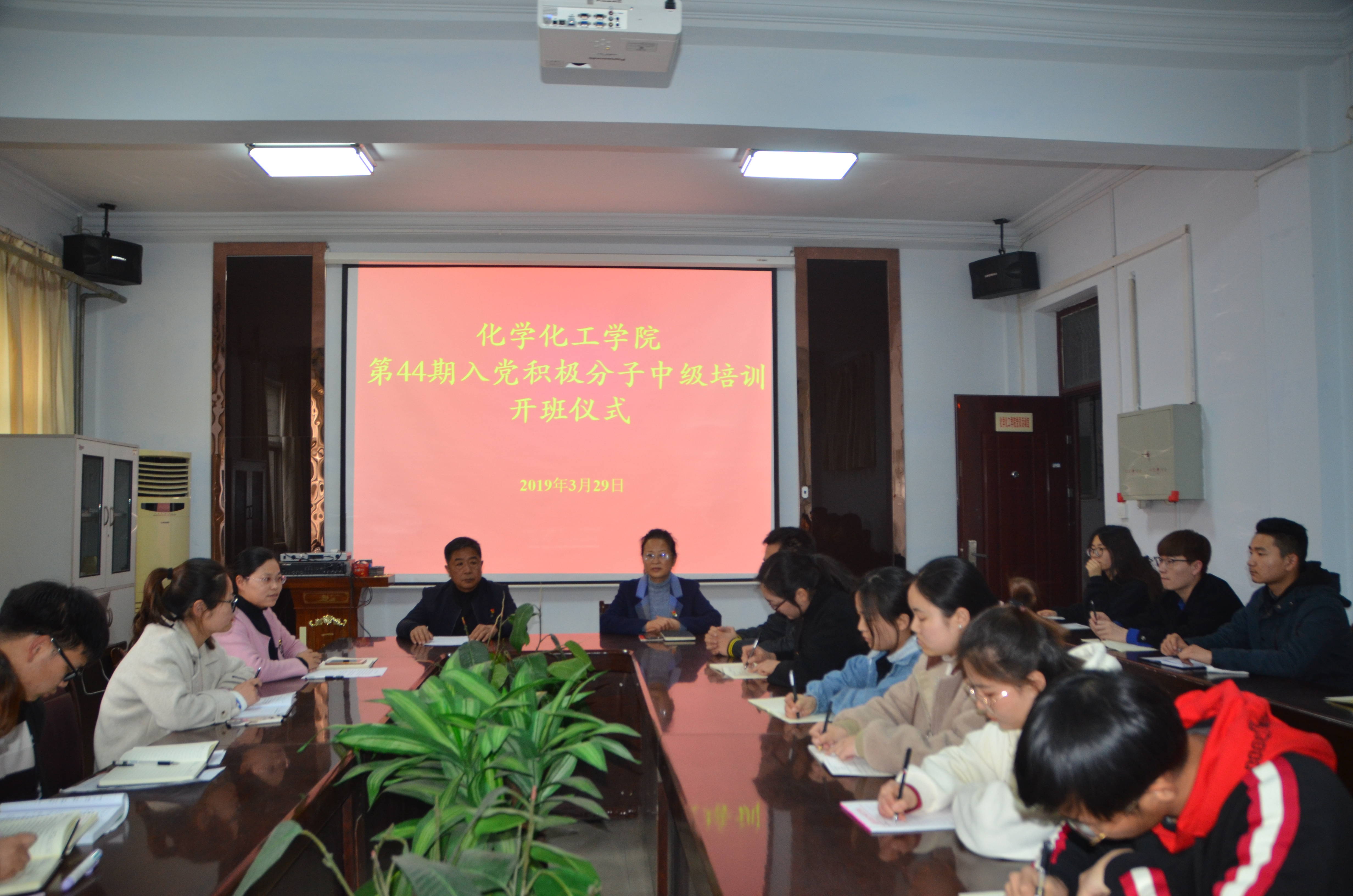 为迎接时代挑战,巩固党的执政地位,加强党的建设, 3月29日下午,金年会jinnianhuicom于睢阳校区7号楼会议室举行了“第44期入党积极分子中级培训开班仪式”。党总支书记韩忠民,党总支副书记刘瑛,团总支书记李龙梅,17级辅导员郭家瑞,18级辅导员邵一方出席会议,入党积极分子中级学员参加。