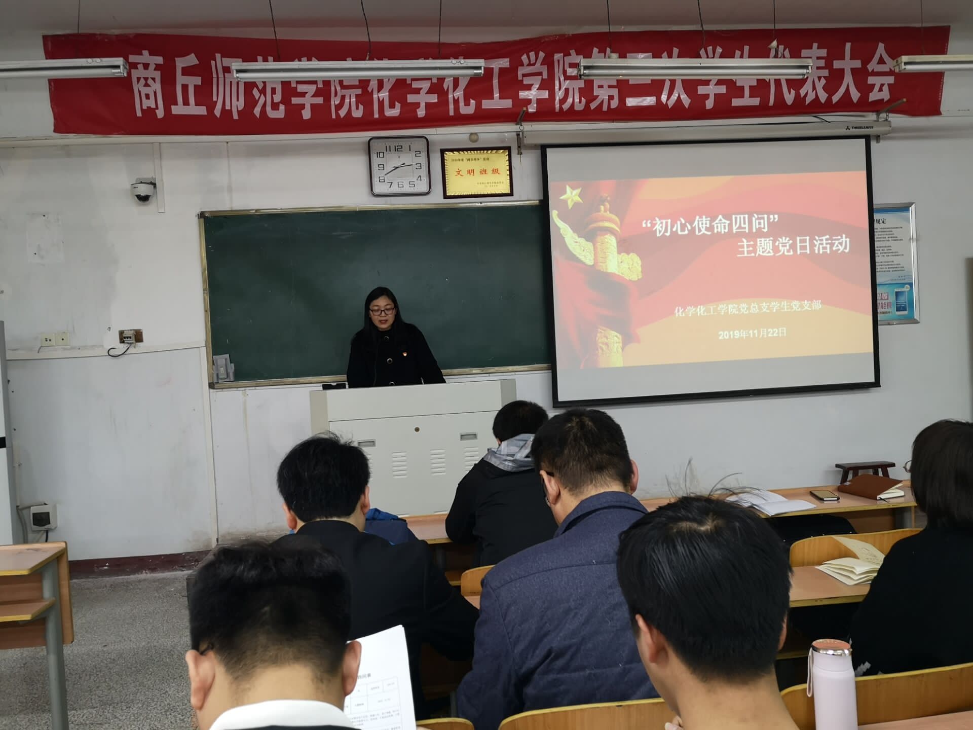 为深入推进“不忘初心、牢记使命”主题教育,紧扣主题教育“守初心、担使命,找差距、抓落实”总要求,金年会jinnianhuicom学生党支部11月23日于1号楼408组织开展“初心使命四问”主题党日活动。院四个学生党支部全体成员参加会议,会议由学生第一党支部书记李龙梅主持。