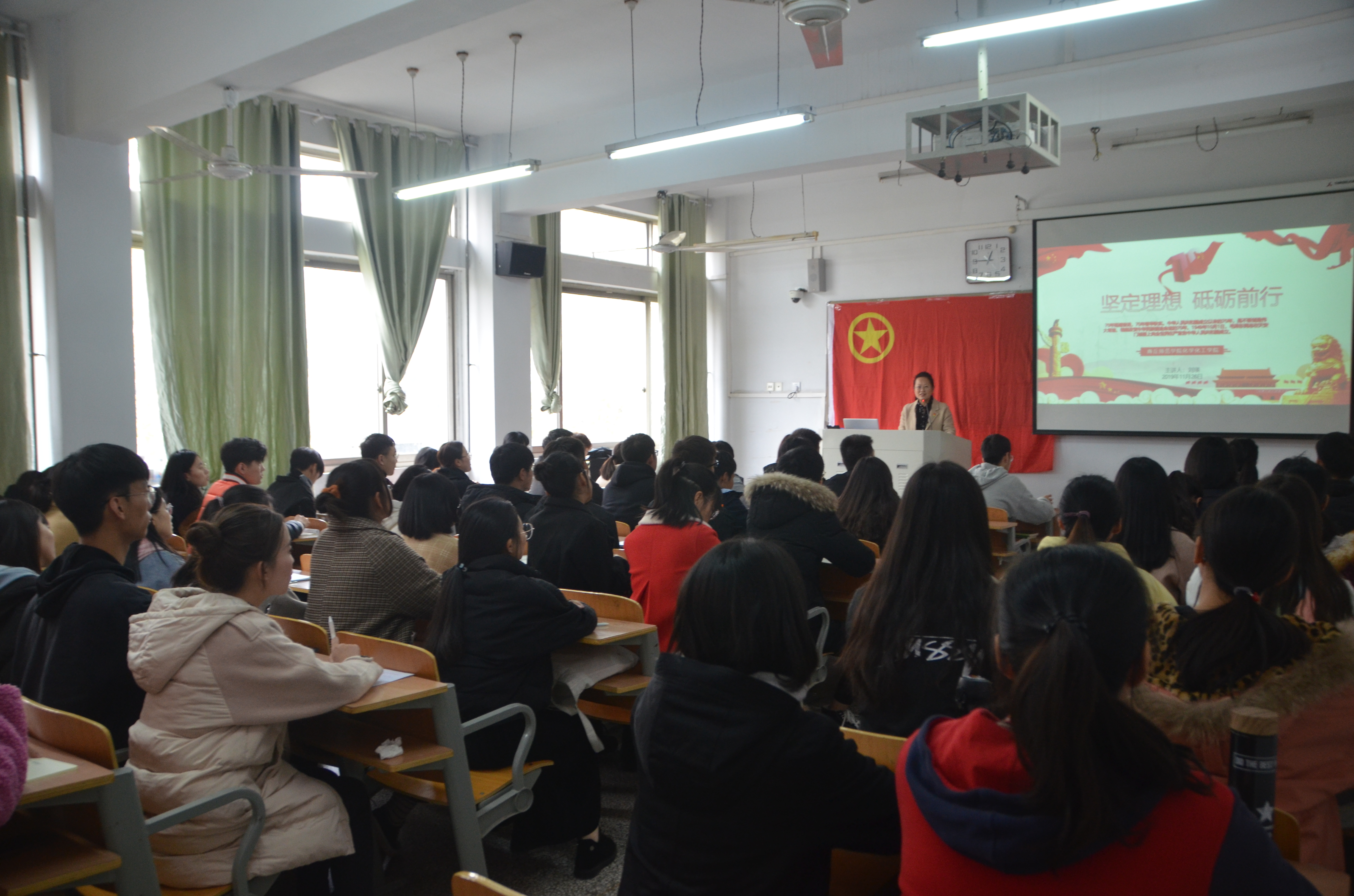 为了提升青马学员的思想政治素质,使其坚定理想信念,成长为中国特色社会主义事业的合格建设者和可靠接班人,9月26日中午,金年会jinnianhuicom于睢阳校区1号楼411教室举行了青马培训班第一讲“坚定理想,砥砺前行”。第二期青马培训班全体成员参加,党总支副书记刘瑛主讲。