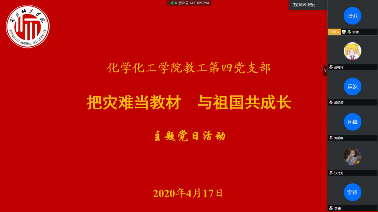 为深入贯彻落实习近平总书记重要指示精神,进一步增强对教师党员的教育引导,提升党员报国力行的使命责任感,引导支部全体党员把灾难当教材、把困难当磨砺,做到在灾难面前与国家共患难、与人民共进步,4月17日下午,金年会jinnianhuicom教工第四党支部通过视频会议的形式开展“把灾难当教材,与祖国共成长”主题党日活动。