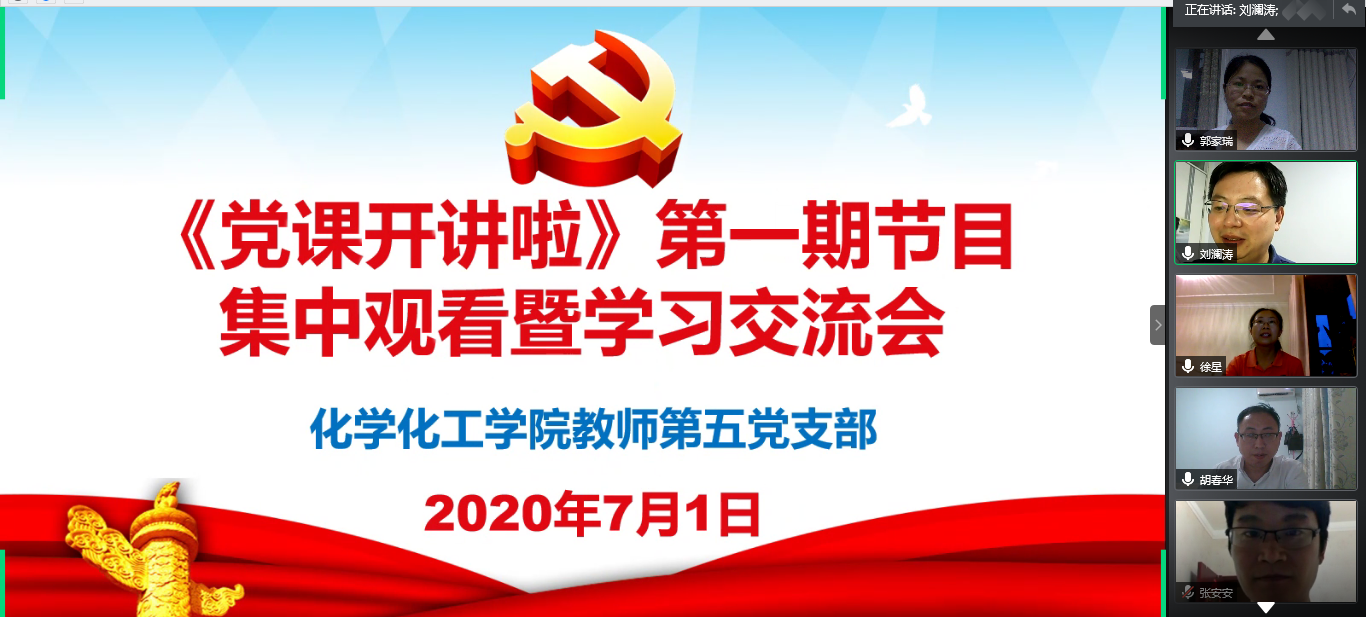 7月1日晚,金年会jinnianhuicom教工第五党支部全体党员在线集中观看了《党课开讲了》第一期节目,交流了学习体会。