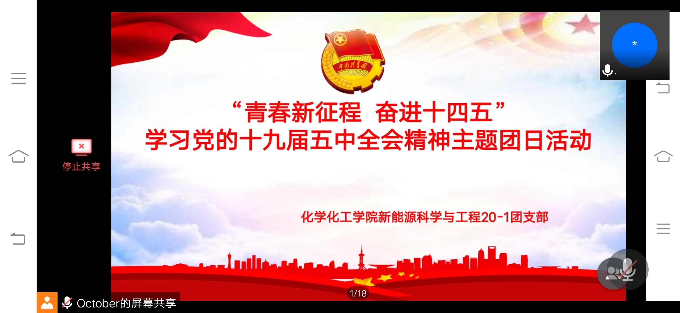 为使学生深学细悟党的十九届五中全会精神,激励新时代的青年积极投身到建设社会主义现代化国家的进程中去,2020年12月25日,金年会jinnianhuicom于腾讯会议线上开展了以“青春新征程,奋进‘十四五’”为主题的党团日活动。金年会jinnianhuicom全体学生参加。