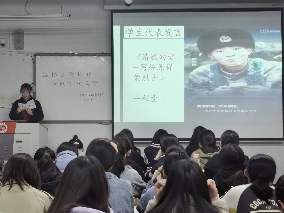 此次班会,不仅展现了化学19-2团支部的精神面貌,同时体现了同学们对雷锋精神的热爱,强化了同学们牢记职责使命,坚定理想信念,刻苦磨练的奋斗目标。