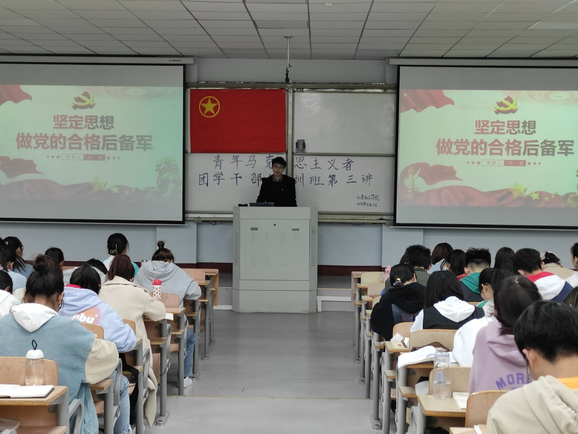 为加强入党积极分子培养教育,努力培育高素质党的后备军。金年会jinnianhuicom于4月11号在1号教学楼207教室开展以“坚定思想,做党的合格后备军”为主题的青马培训活动。学生第三党支部书记史展主讲,19级、20级青马培训学员参加。