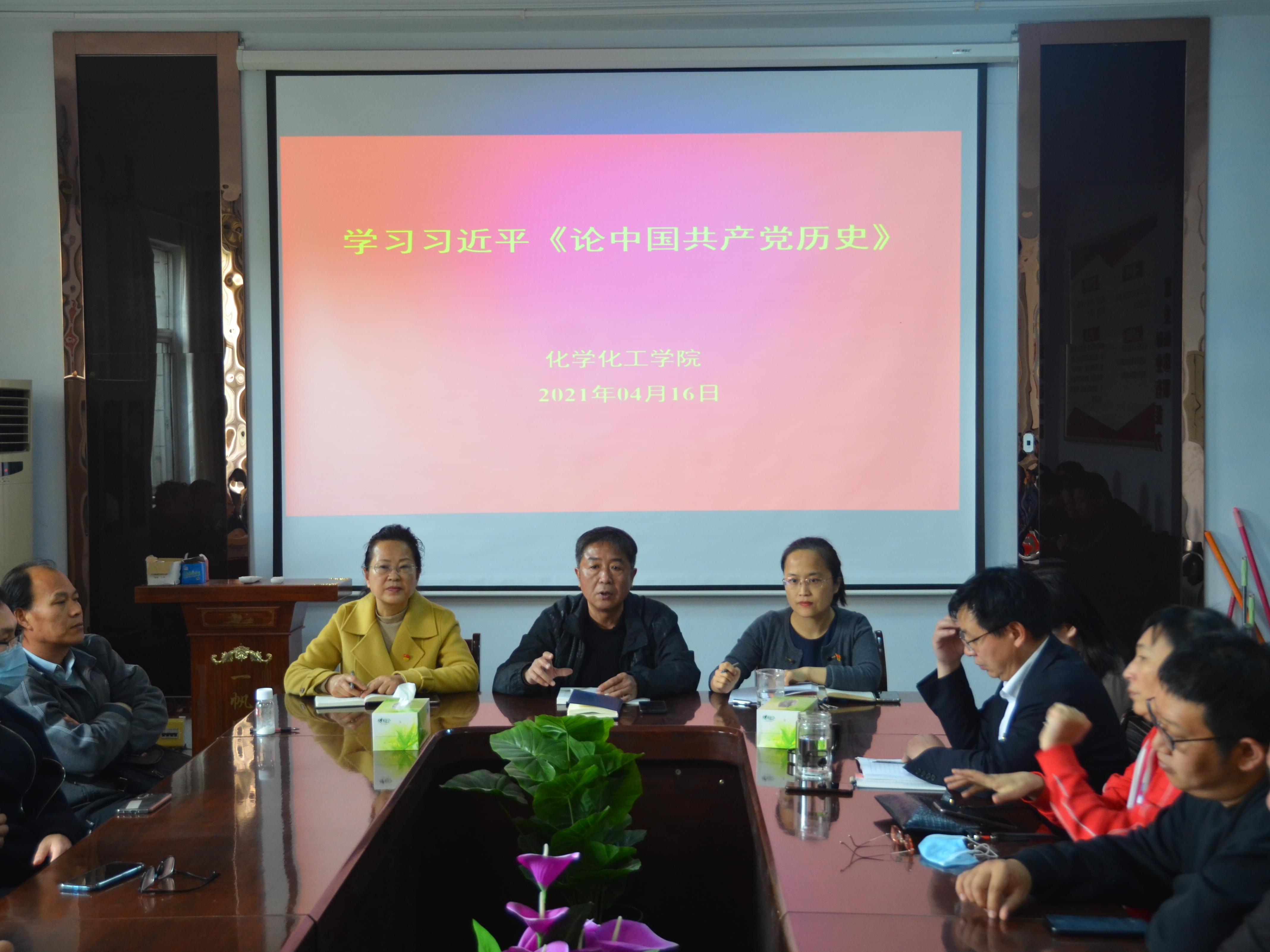 为进一步加强党的建设,弘扬党的优良传统,加强党员干部的理论学习,4月16日,化工金年会jinnianhuicom于7号楼会议室学习了《习近平论中国共产党历史》,会议由金年会jinnianhuicom党总支书记韩忠民主持。
